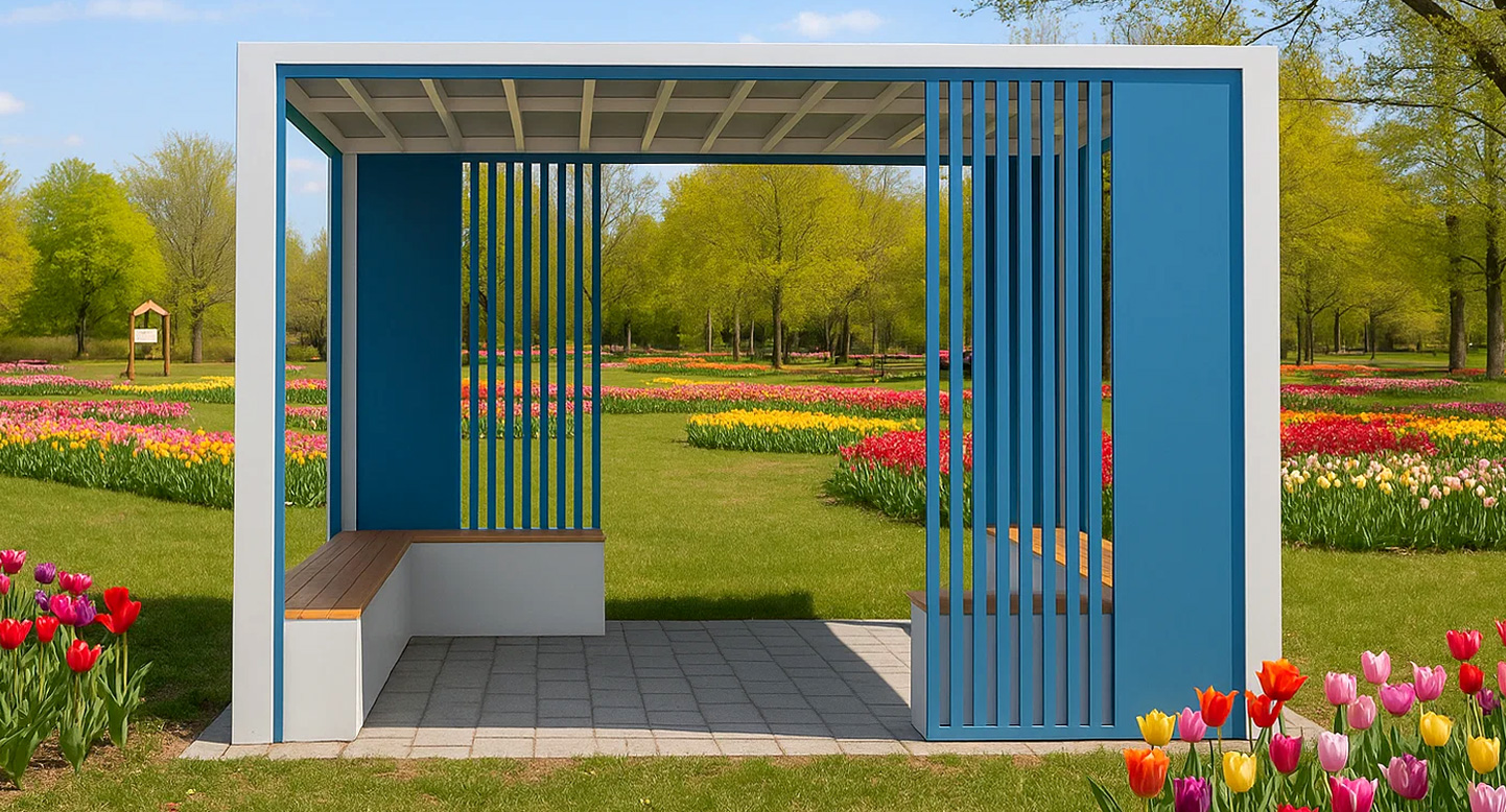 튤립 브리즈 쉼터 (Tulip Breeze Shelter)|PNDP-246 제품목록으로 바로가기 자료 및 바로가기 나라장터 바로연결 도면 다운로드 시공사진 보러가기 기타 선명한 블루 톤과 슬렌더 라인의 조화로, 꽃이 가득한 정원 속 상쾌한 바람과 개방감을 표현했습니다. 제품명 튤립 브리즈 쉼터 (Tulip Breeze Shelter)|PNDP-246 물품식별번호 24948862 규격 3,800 X 3,800 X 2,600(H) 재질 stl, galvanized, hard wood, polycarbonate 튤립 브리즈 쉼터 (Tulip Breeze Shelter)|PNDP-246 물품식별번호 24948862 규격 3,800 X 3,800 X 2,600(H) 재질 stl, galvanized, hard wood, polycarbonate 기타 선명한 블루 톤과 슬렌더 라인의 조화로, 꽃이 가득한 정원 속 상쾌한 바람과 개방감을 표현했습니다. 자료 및 바로가기 나라장터 바로연결 도면 다운로드 시공사진 보러가기