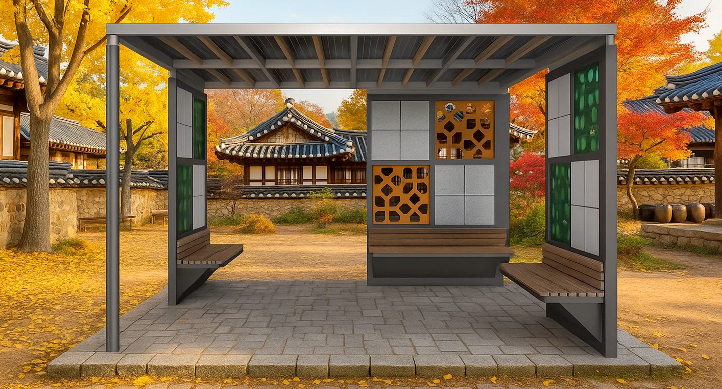 한옥프레임 쉼터 (Hanok Frame Shelter)|PNDP-256 제품목록으로 바로가기 자료 및 바로가기 나라장터 바로연결 도면 다운로드 시공사진 보러가기 기타 전통 한옥의 격자 창살과 색감을 현대적으로 재해석한 쉼터입니다. 한옥의 따뜻한 정서와 모듈 디자인을 접목해, 어느 공간에서도 자연스럽게 어우러지도록 설계했습니다. 제품명 한옥프레임 쉼터 (Hanok Frame Shelter)|PNDP-256 물품식별번호 24955327 규격 3,613 X 3,613 X 2,425(H) 재질 stl,galvanized,hardwood,polycarbonate birchplywood,hpl,pc 한옥프레임 쉼터 (Hanok Frame Shelter)|PNDP-256 물품식별번호 24955327 규격 3,613 X 3,613 X 2,425(H) 재질 stl,galvanized,hardwood,polycarbonate birchplywood,hpl,pc 기타 전통 한옥의 격자 창살과 색감을 현대적으로 재해석한 쉼터입니다. 한옥의 따뜻한 정서와 모듈 디자인을 접목해, 어느 공간에서도 자연스럽게 어우러지도록 설계했습니다. 자료 및 바로가기 나라장터 바로연결 도면 다운로드 시공사진 보러가기
