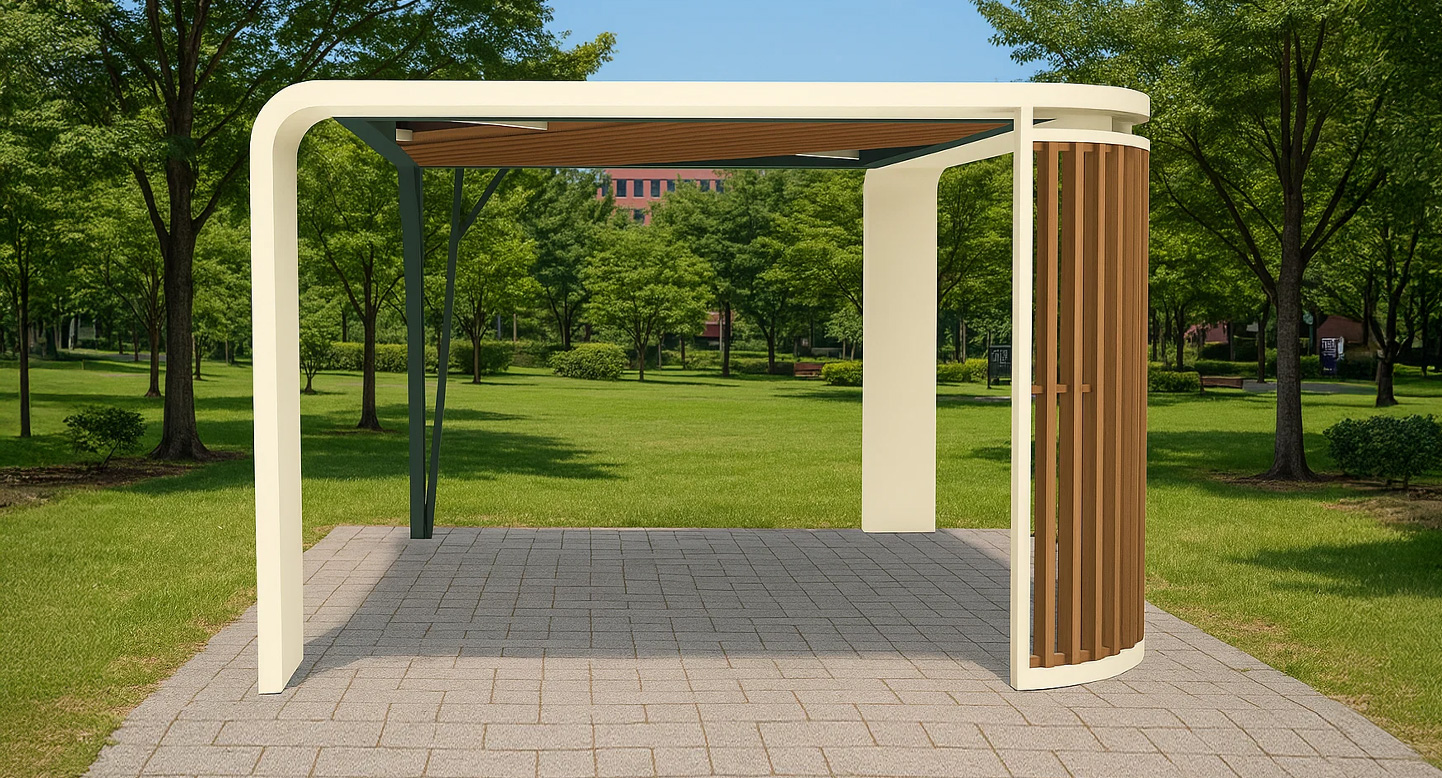 커브라인 퍼걸러 (Curve Line Pergola)|PNDP-409 제품목록으로 바로가기 자료 및 바로가기 나라장터 바로연결 도면 다운로드 시공사진 보러가기 기타 부드럽게 휘어진 프레임과 우드 라인이 조화를 이루어 현대적이면서도 따뜻한 분위기를 연출하는 디자인으로, 공원·단지 등 다양한 공간에 포인트가 되는 쉼터입니다. 제품명 커브라인 퍼걸러 (Curve Line Pergola)|PNDP-409 물품식별번호 24955398 규격 4,000 X 4,000 X 2,750(H) 재질 stl, galvanized, hard wood, polycarbonate 커브라인 퍼걸러 (Curve Line Pergola)|PNDP-409 물품식별번호 24955398 규격 4,000 X 4,000 X 2,750(H) 재질 stl, galvanized, hard wood, polycarbonate 기타 부드럽게 휘어진 프레임과 우드 라인이 조화를 이루어 현대적이면서도 따뜻한 분위기를 연출하는 디자인으로, 공원·단지 등 다양한 공간에 포인트가 되는 쉼터입니다. 자료 및 바로가기 나라장터 바로연결 도면 다운로드 시공사진 보러가기
