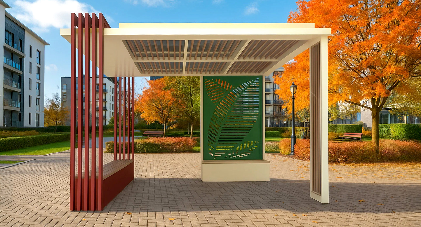 리프 스페이스 쉘터 (Leaf Space Shelter)|PNDP-211 제품목록으로 바로가기 자료 및 바로가기 나라장터 바로연결 도면 다운로드 시공사진 보러가기 기타 선형 구조와 리프 패턴 월을 조합해 자연의 리듬감을 현대적으로 표현한 쉼터로, 단지와 공원에 세련된 포인트와 편안한 휴식감을 동시에 제공합니다. 제품명 리프 스페이스 쉘터 (Leaf Space Shelter)|PNDP-211 물품식별번호 24948830 규격 4,000 X 4,000 X 2,800(H) 재질 stl, galvanized, hardwood, polycarbonate 리프 스페이스 쉘터 (Leaf Space Shelter)|PNDP-211 물품식별번호 24948830 규격 4,000 X 4,000 X 2,800(H) 재질 stl, galvanized, hardwood, polycarbonate 기타 선형 구조와 리프 패턴 월을 조합해 자연의 리듬감을 현대적으로 표현한 쉼터로, 단지와 공원에 세련된 포인트와 편안한 휴식감을 동시에 제공합니다. 자료 및 바로가기 나라장터 바로연결 도면 다운로드 시공사진 보러가기