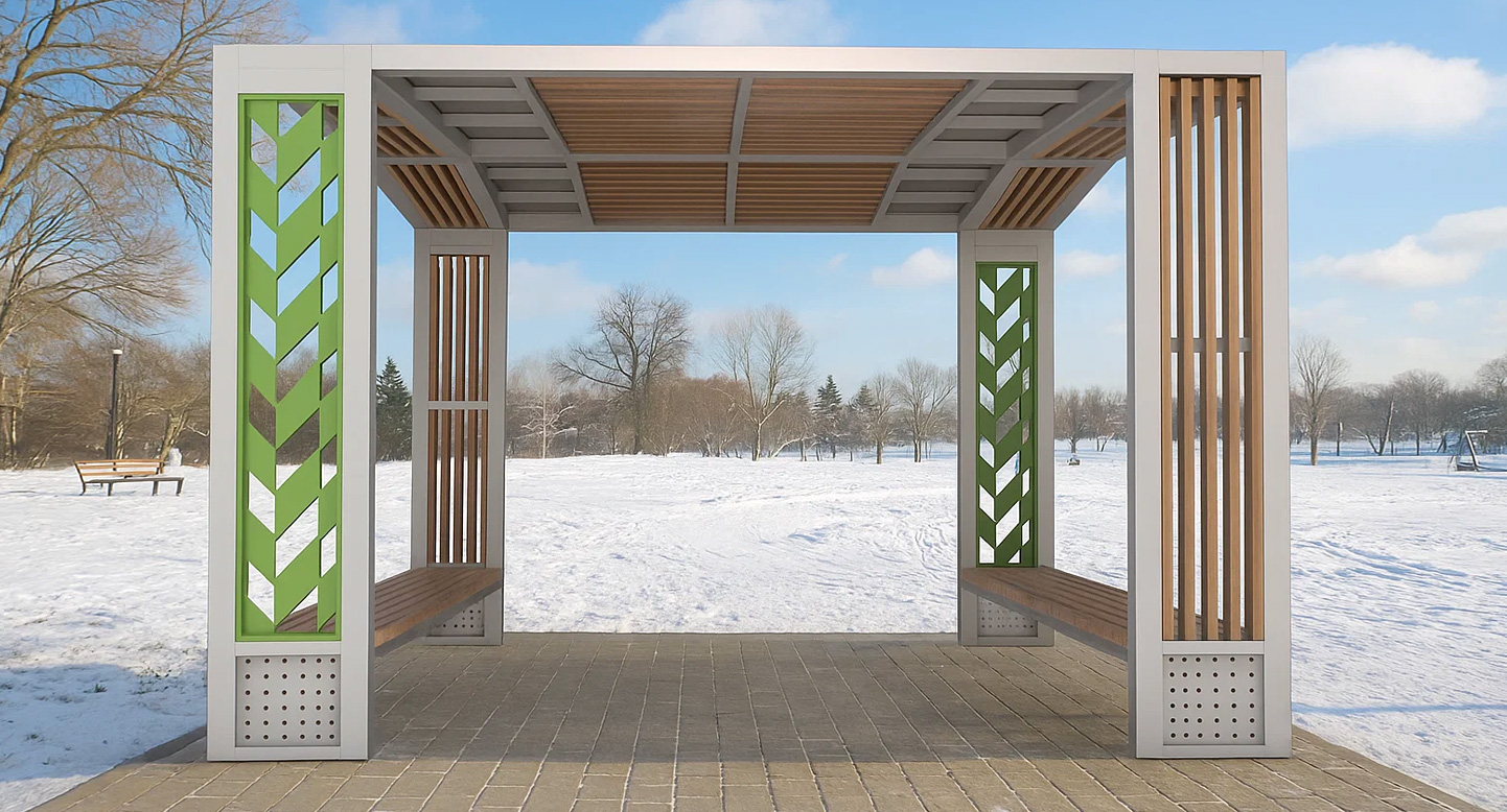 리프라인 윈터 쉘터 (Leafline Winter Shelter)|PNDP-210 제품목록으로 바로가기 자료 및 바로가기 나라장터 바로연결 도면 다운로드 시공사진 보러가기 기타 상징적인 리프 패턴과 따뜻한 우드 라인이 겨울 풍경과 어우러져, 계절감 속에서도 아늑함과 세련미를 제공하는 모던 커뮤니티 쉼터입니다. 제품명 리프라인 윈터 쉘터 (Leafline Winter Shelter)|PNDP-210 물품식별번호 24948829 규격 4,000 X 4,000 X 2,900(H) 재질 stl, galvanized, hardwood, polycarbonate, birchpiywood,hpl 리프라인 윈터 쉘터 (Leafline Winter Shelter)|PNDP-210 물품식별번호 24948829 규격 4,000 X 4,000 X 2,900(H) 재질 stl, galvanized, hardwood, polycarbonate, birchpiywood,hpl 기타 상징적인 리프 패턴과 따뜻한 우드 라인이 겨울 풍경과 어우러져, 계절감 속에서도 아늑함과 세련미를 제공하는 모던 커뮤니티 쉼터입니다. 자료 및 바로가기 나라장터 바로연결 도면 다운로드 시공사진 보러가기