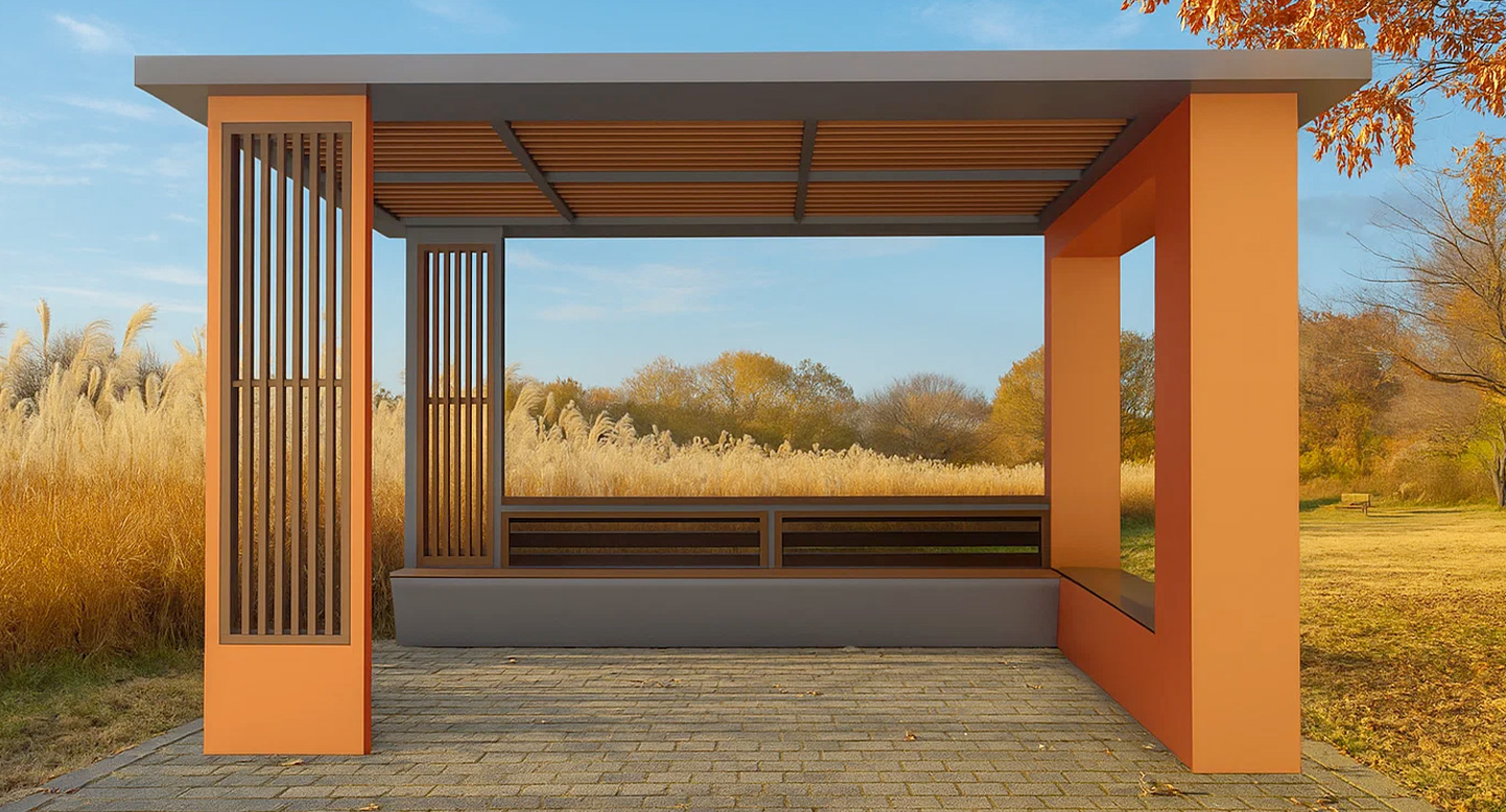 테라코타 파빌리온 (Terracotta Pavilion)|PNDP-222 제품목록으로 바로가기 자료 및 바로가기 나라장터 바로연결 도면 다운로드 시공사진 보러가기 기타 따뜻한 테라코타 컬러와 우드 라인의 조화를 통해 자연 속에서 부드럽고 품격 있는 휴식 경험을 제공하도록 설계한 프리미엄 쉼터입니다. 제품명 테라코타 파빌리온 (Terracotta Pavilion)|PNDP-222 물품식별번호 24948839 규격 4,000 X 4,000 X 2,700(H) 재질 stl, galvanized, hardwood, polycarbonate 테라코타 파빌리온 (Terracotta Pavilion)|PNDP-222 물품식별번호 24948839 규격 4,000 X 4,000 X 2,700(H) 재질 stl, galvanized, hardwood, polycarbonate 기타 따뜻한 테라코타 컬러와 우드 라인의 조화를 통해 자연 속에서 부드럽고 품격 있는 휴식 경험을 제공하도록 설계한 프리미엄 쉼터입니다. 자료 및 바로가기 나라장터 바로연결 도면 다운로드 시공사진 보러가기