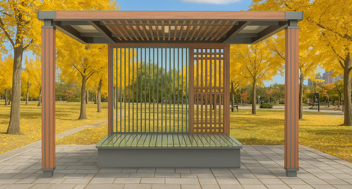 진저 리프 파빌리온 (Ginger Leaf Pavilion)|PNDP-230 제품목록으로 바로가기 자료 및 바로가기 나라장터 바로연결 도면 다운로드 시공사진 보러가기 기타 황금빛 가을 풍경과 자연스럽게 어우러지는 우드 루버 패턴을 활용해, 계절의 따뜻함과 편안함을 담아낸 감성형 가을 쉼터입니다. 제품명 진저 리프 파빌리온 (Ginger Leaf Pavilion)|PNDP-230 물품식별번호 24948846 규격 4,000 X 4,000 X 2,600(H) 재질 stl, galvanized, hardwood, polycarbonate 진저 리프 파빌리온 (Ginger Leaf Pavilion)|PNDP-230 물품식별번호 24948846 규격 4,000 X 4,000 X 2,600(H) 재질 stl, galvanized, hardwood, polycarbonate 기타 황금빛 가을 풍경과 자연스럽게 어우러지는 우드 루버 패턴을 활용해, 계절의 따뜻함과 편안함을 담아낸 감성형 가을 쉼터입니다. 자료 및 바로가기 나라장터 바로연결 도면 다운로드 시공사진 보러가기