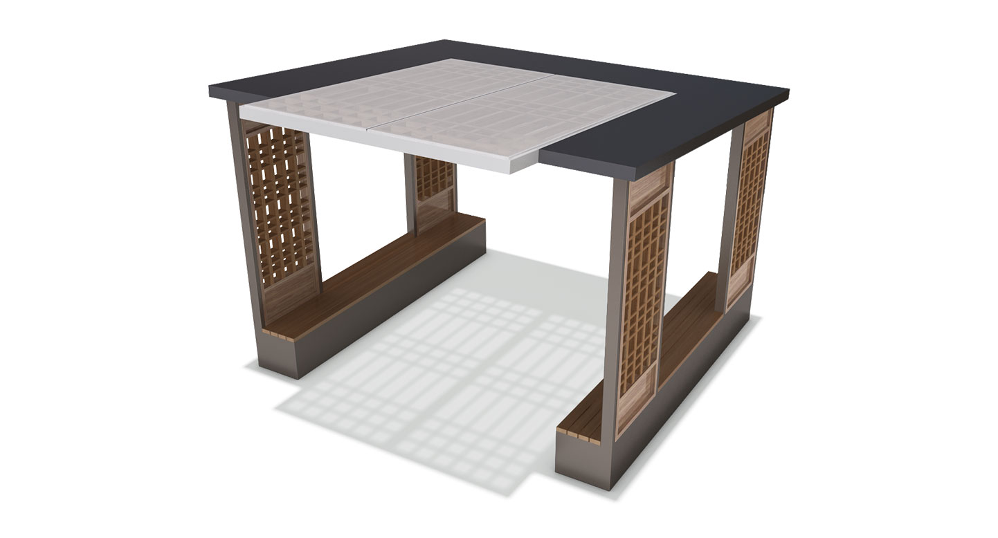 한옥그리드 파빌리온 (Hanok Grid Pavilion)|PNDP-243 제품목록으로 바로가기 자료 및 바로가기 나라장터 바로연결 도면 다운로드 시공사진 보러가기 기타 한옥 창호 패턴을 현대적으로 재해석해 전통의 미와 차분한 쉼을 동시에 담아낸 디자인입니다. 제품명 한옥그리드 파빌리온 (Hanok Grid Pavilion)|PNDP-243 물품식별번호 24948859 규격 4,000 X 3,993 X 2,848(H) 재질 stl, galvanized, hard wood, polycarbonate 한옥그리드 파빌리온 (Hanok Grid Pavilion)|PNDP-243 물품식별번호 24948859 규격 4,000 X 3,993 X 2,848(H) 재질 stl, galvanized, hard wood, polycarbonate 기타 한옥 창호 패턴을 현대적으로 재해석해 전통의 미와 차분한 쉼을 동시에 담아낸 디자인입니다. 자료 및 바로가기 나라장터 바로연결 도면 다운로드 시공사진 보러가기