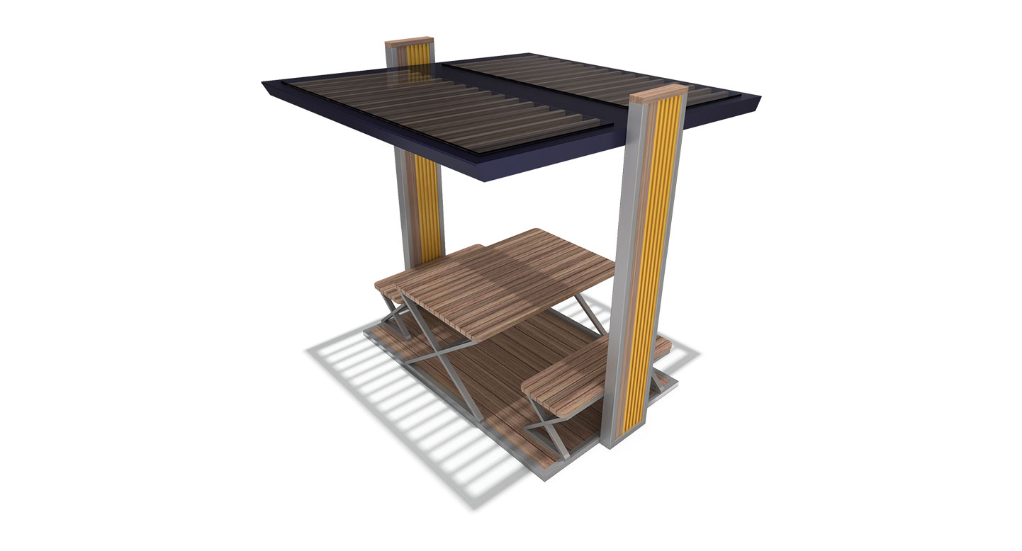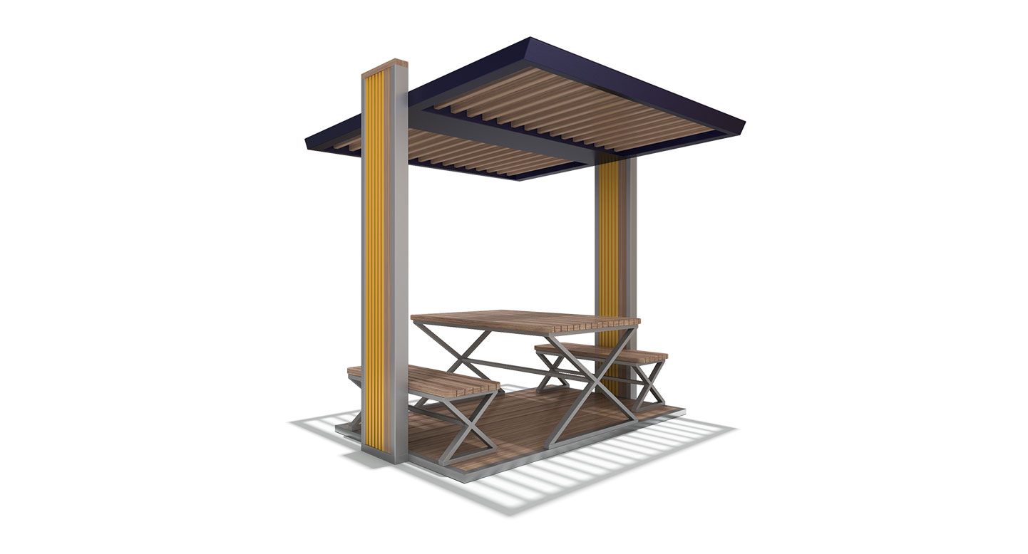 옐로라운지 쉼터 (Yellow Lounge Shelter)|PNDP-906 제품목록으로 바로가기 자료 및 바로가기 나라장터 바로연결 도면 다운로드 시공사진 보러가기 기타 투명 슬랫 지붕과 노란 포인트 기둥을 적용해 밝고 활기 있는 분위기를 만들고, 테이블·벤치를 일체화해 누구나 편하게 머물 수 있는 실용적 쉼터입니다. 제품명 옐로라운지 쉼터 (Yellow Lounge Shelter)|PNDP-906 물품식별번호 24955963 규격 2,600 X 2,600 X 2,500(H) 재질 stl, galvanized, hard wood, polycarbonate 옐로라운지 쉼터 (Yellow Lounge Shelter)|PNDP-906 물품식별번호 24955963 규격 2,600 X 2,600 X 2,500(H) 재질 stl, galvanized, hard wood, polycarbonate 기타 투명 슬랫 지붕과 노란 포인트 기둥을 적용해 밝고 활기 있는 분위기를 만들고, 테이블·벤치를 일체화해 누구나 편하게 머물 수 있는 실용적 쉼터입니다. 자료 및 바로가기 나라장터 바로연결 도면 다운로드 시공사진 보러가기