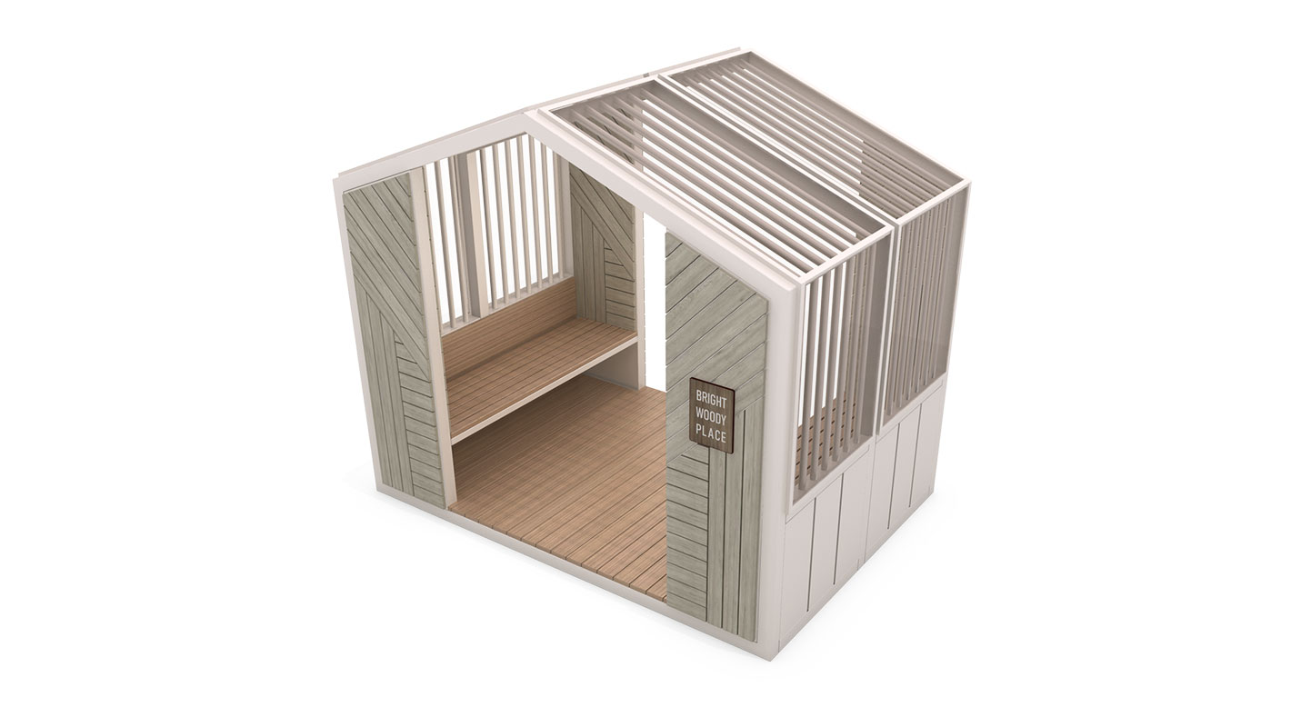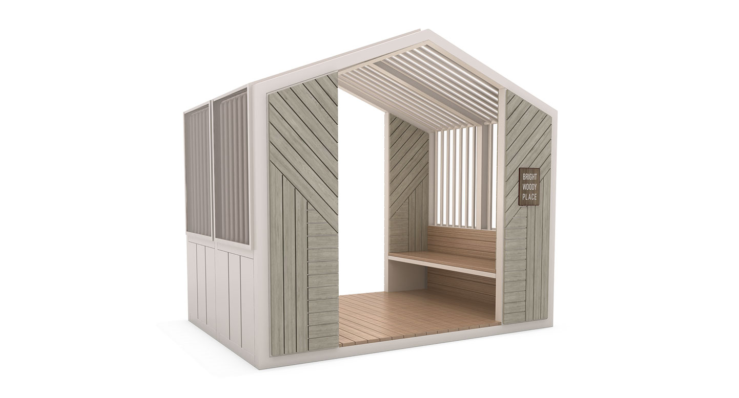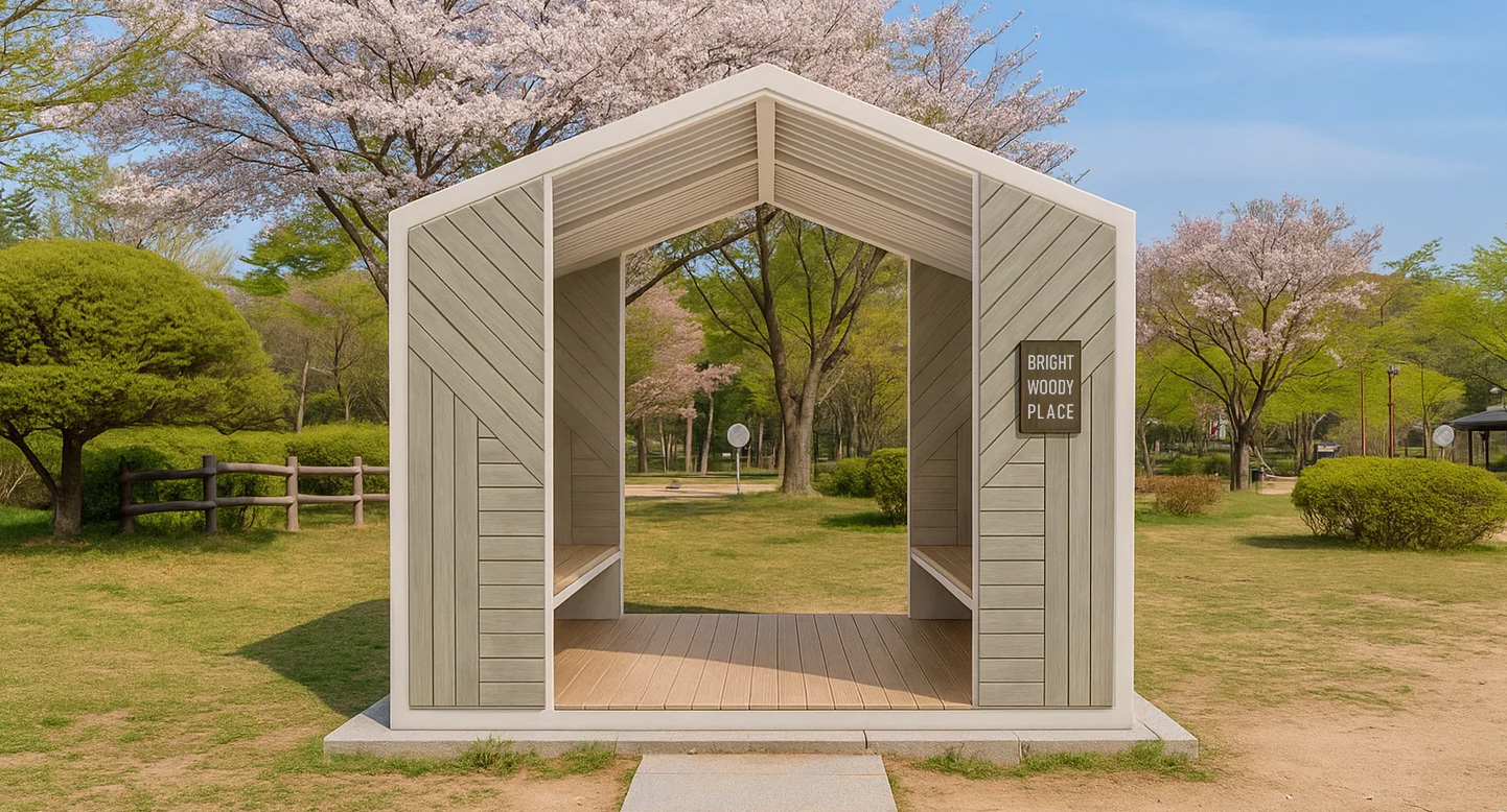 우드하우스 쉼터 (Wood House Shelter)|PNDP-526 제품목록으로 바로가기 자료 및 바로가기 나라장터 바로연결 도면 다운로드 시공사진 보러가기 기타 집 형태의 박공지붕과 헤링본 우드 패널을 조합해 자연 속 작은 휴식 공간을 만들고, 양측 벤치를 통해 머무름과 전망을 동시에 제공하는 감성형 쉼터입니다. 제품명 우드하우스 쉼터 (Wood House Shelter)|PNDP-526 물품식별번호 25953091 규격 2,600 x 1,800 x 2,300(H) 재질 stl, galvanized, polycarbonate, hpl 우드하우스 쉼터 (Wood House Shelter)|PNDP-526 물품식별번호 25953091 규격 2,600 x 1,800 x 2,300(H) 재질 stl, galvanized, polycarbonate, hpl 기타 집 형태의 박공지붕과 헤링본 우드 패널을 조합해 자연 속 작은 휴식 공간을 만들고, 양측 벤치를 통해 머무름과 전망을 동시에 제공하는 감성형 쉼터입니다. 자료 및 바로가기 나라장터 바로연결 도면 다운로드 시공사진 보러가기