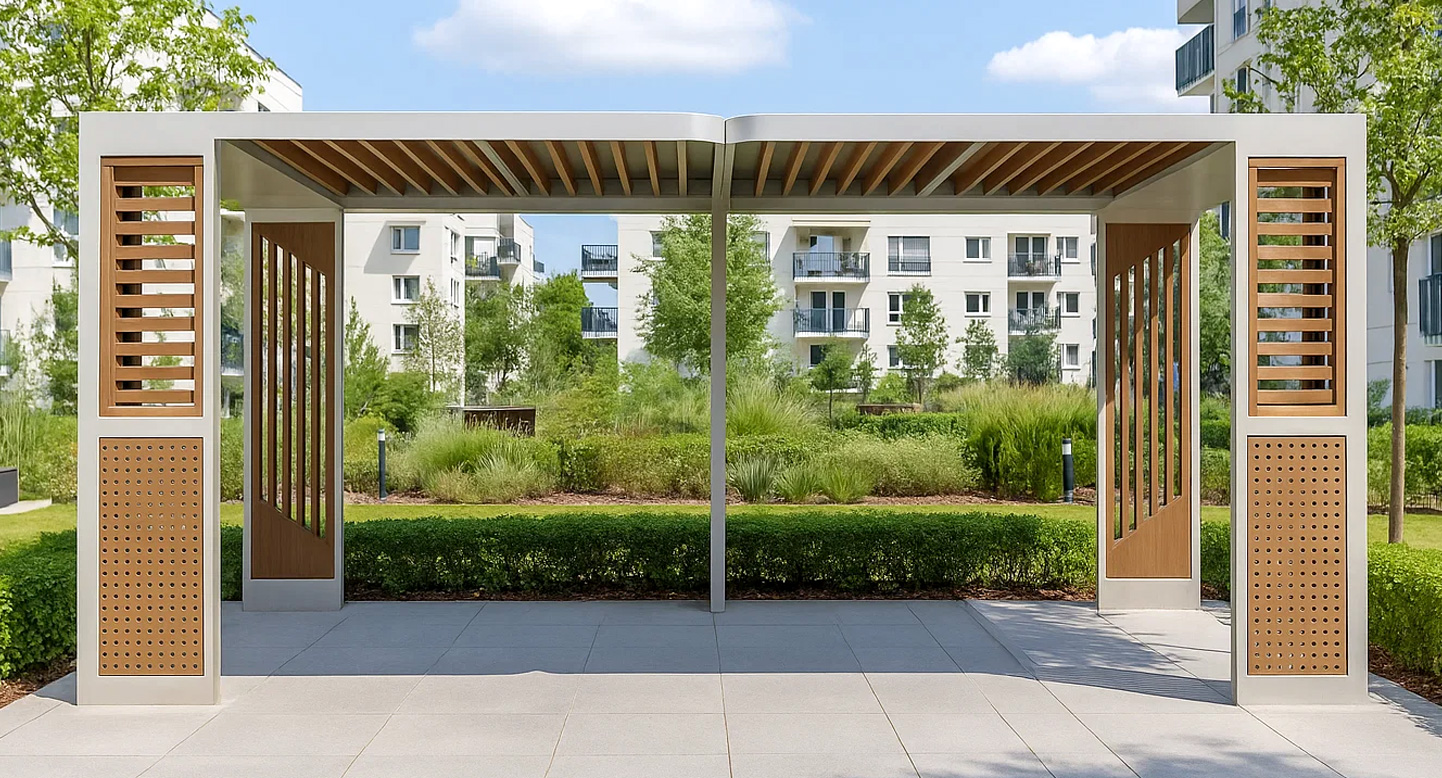 우든 프레임 퍼걸러 (Wooden Frame Pergola)|PNDP-717 제품목록으로 바로가기 자료 및 바로가기 나라장터 바로연결 도면 다운로드 시공사진 보러가기 기타 따뜻한 우드 슬랫과 미니멀 프레임 구조가 어우러져 주거단지·공원 등에서 편안한 휴식 공간을 제공합니다.개방감 있는 구조로 바람과 빛을 자연스럽게 받아들이며,조경과 조화를 이루도록 설계된 현대적 쉼터입니다. 제품명 우든 프레임 퍼걸러 (Wooden Frame Pergola)|PNDP-717 물품식별번호 24955670 규격 6,000 X 3,000 X 2,600(H) 재질 stl, galvanized, hard wood, polycarbonate 우든 프레임 퍼걸러 (Wooden Frame Pergola)|PNDP-717 물품식별번호 24955670 규격 6,000 X 3,000 X 2,600(H) 재질 stl, galvanized, hard wood, polycarbonate 기타 따뜻한 우드 슬랫과 미니멀 프레임 구조가 어우러져 주거단지·공원 등에서 편안한 휴식 공간을 제공합니다.개방감 있는 구조로 바람과 빛을 자연스럽게 받아들이며,조경과 조화를 이루도록 설계된 현대적 쉼터입니다. 자료 및 바로가기 나라장터 바로연결 도면 다운로드 시공사진 보러가기