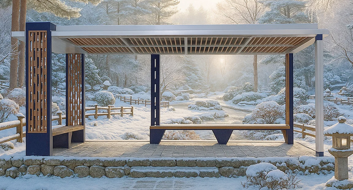 윈터 가든 퍼걸러 (Winter Garden Pergola)|PNDP-702 제품목록으로 바로가기 자료 및 바로가기 나라장터 바로연결 도면 다운로드 시공사진 보러가기 기타 네이비 프레임과 우드 슬랫을 조합해 눈 덮인 정원에서도 따뜻한 분위기를 유지하는 사계절 쉼터입니다. 차분한 색감과 개방형 구조가 자연 풍경을 깊이 있게 담아내며, 전통정원·사계정원·호수공원 등에서 품격 있는 휴식 공간을 제공합니다. 제품명 윈터 가든 퍼걸러 (Winter Garden Pergola)|PNDP-702 물품식별번호 24955657 규격 6,000 X 4,000 X 2,800(H) 재질 stl, galvanized, hard wood, polycarbonate 윈터 가든 퍼걸러 (Winter Garden Pergola)|PNDP-702 물품식별번호 24955657 규격 6,000 X 4,000 X 2,800(H) 재질 stl, galvanized, hard wood, polycarbonate 기타 네이비 프레임과 우드 슬랫을 조합해 눈 덮인 정원에서도 따뜻한 분위기를 유지하는 사계절 쉼터입니다. 차분한 색감과 개방형 구조가 자연 풍경을 깊이 있게 담아내며, 전통정원·사계정원·호수공원 등에서 품격 있는 휴식 공간을 제공합니다. 자료 및 바로가기 나라장터 바로연결 도면 다운로드 시공사진 보러가기