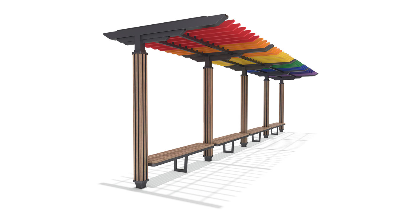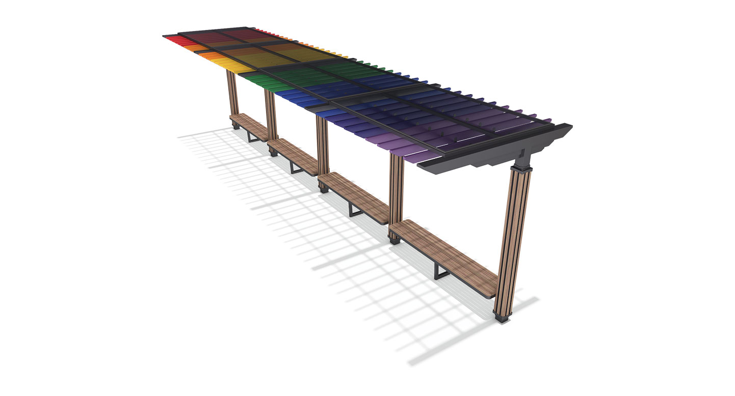 레인보우 쉘터(Rainbow Shelter)|PNDP-904-4 제품목록으로 바로가기 자료 및 바로가기 나라장터 바로연결 도면 다운로드 시공사진 보러가기 기타 지붕에 컬러 그라데이션을 적용해 밝고 생동감 있는 분위기를 만든 쉼터입니다. 우드라인 기둥과 조합해 자연미와 디자인 포인트를 함께 살렸습니다. 제품명 레인보우 쉘터(Rainbow Shelter)|PNDP-904-4 물품식별번호 24955855 규격 10,080 X 2,400 X 2,740(H) 재질 stl, hard wood, polycarbonate 레인보우 쉘터(Rainbow Shelter)|PNDP-904-4 물품식별번호 24955855 규격 10,080 X 2,400 X 2,740(H) 재질 stl, hard wood, polycarbonate 기타 지붕에 컬러 그라데이션을 적용해 밝고 생동감 있는 분위기를 만든 쉼터입니다. 우드라인 기둥과 조합해 자연미와 디자인 포인트를 함께 살렸습니다. 자료 및 바로가기 나라장터 바로연결 도면 다운로드 시공사진 보러가기