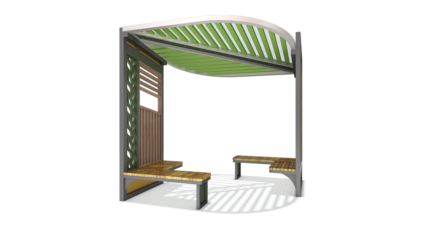 리프 쉐이드 파빌리온 (Leaf Shade Pavilion)|PNDP-914 제품목록으로 바로가기 자료 및 바로가기 나라장터 바로연결 도면 다운로드 시공사진 보러가기 기타 잎사귀 실루엣을 모티브로 한 지붕과 패널로 자연 친화감을 극대화한 쉼터입니다. 슬랫 구조가 빛을 부드럽게 투과시키며, 양쪽 벤치가 아늑한 휴식 공간을 형성합니다. 제품명 리프 쉐이드 파빌리온 (Leaf Shade Pavilion)|PNDP-914 물품식별번호 24955986 규격 2,650 X 2,475 X 2,808(H) 재질 stl, galvanized, birch plywood, hard wood, polycarbonate 리프 쉐이드 파빌리온 (Leaf Shade Pavilion)|PNDP-914 물품식별번호 24955986 규격 2,650 X 2,475 X 2,808(H) 재질 stl, galvanized, birch plywood, hard wood, polycarbonate 기타 잎사귀 실루엣을 모티브로 한 지붕과 패널로 자연 친화감을 극대화한 쉼터입니다. 슬랫 구조가 빛을 부드럽게 투과시키며, 양쪽 벤치가 아늑한 휴식 공간을 형성합니다. 자료 및 바로가기 나라장터 바로연결 도면 다운로드 시공사진 보러가기