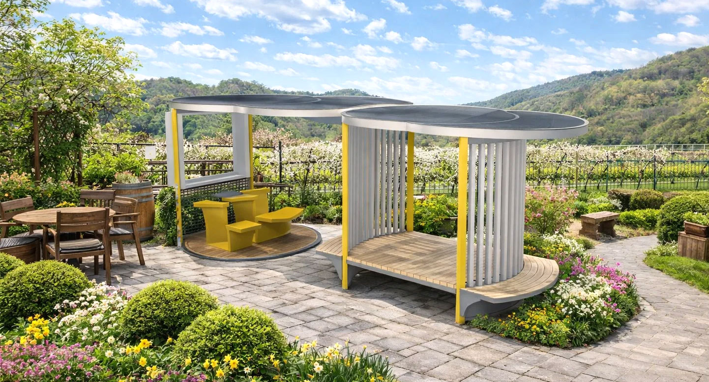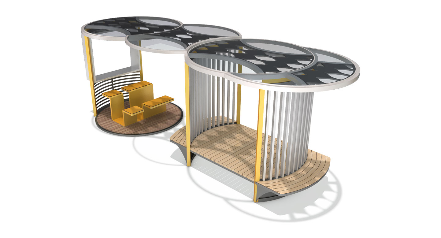 듀얼 서클 파빌리온 (Dual Circle Pavilion)|PNDP-1137 제품목록으로 바로가기 자료 및 바로가기 나라장터 바로연결 도면 다운로드 시공사진 보러가기 기타 두 개의 원형 캐노피를 연속 연결해 만든 모듈형 쉼터로, 한쪽은 테이블형·한쪽은 개방형 라운지로 구성되어 다양한 이용 패턴을 수용합니다. 패턴 루프와 슬랫 바닥이 세련된 분위기를 강조합니다. 제품명 듀얼 서클 파빌리온 (Dual Circle Pavilion)|PNDP-1137 물품식별번호 24963520 규격 7,000 X 2,500 X 2,525(H) 재질 stl, galvanized, hard wood, birch plywood, hpl, PC 듀얼 서클 파빌리온 (Dual Circle Pavilion)|PNDP-1137 물품식별번호 24963520 규격 7,000 X 2,500 X 2,525(H) 재질 stl, galvanized, hard wood, birch plywood, hpl, PC 기타 두 개의 원형 캐노피를 연속 연결해 만든 모듈형 쉼터로, 한쪽은 테이블형·한쪽은 개방형 라운지로 구성되어 다양한 이용 패턴을 수용합니다. 패턴 루프와 슬랫 바닥이 세련된 분위기를 강조합니다. 자료 및 바로가기 나라장터 바로연결 도면 다운로드 시공사진 보러가기