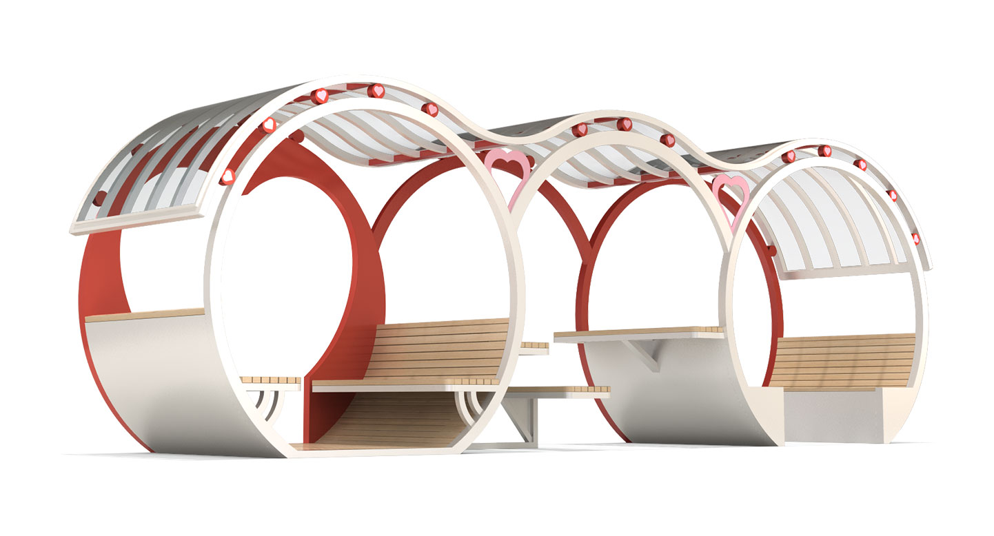하트웨이 파빌리온 (Heartway Pavilion)|PNDP-1126 제품목록으로 바로가기 자료 및 바로가기 나라장터 바로연결 도면 다운로드 시공사진 보러가기 기타 유려한 물결형 루프와 하트 포인트 장식으로 친근하고 밝은 분위기를 연출한 쉼터입니다. 원형 구조 안에 벤치·테이블을 다양하게 배치해 가족·아이들이 함께 머물기 좋은 감성형 휴식 공간입니다. 제품명 하트웨이 파빌리온 (Heartway Pavilion)|PNDP-1126 물품식별번호 24971889 규격 7,172 X 1,660 X 2,437(H) 재질 stl, galvanized, hard wood, polycarbonate 하트웨이 파빌리온 (Heartway Pavilion)|PNDP-1126 물품식별번호 24971889 규격 7,172 X 1,660 X 2,437(H) 재질 stl, galvanized, hard wood, polycarbonate 기타 유려한 물결형 루프와 하트 포인트 장식으로 친근하고 밝은 분위기를 연출한 쉼터입니다. 원형 구조 안에 벤치·테이블을 다양하게 배치해 가족·아이들이 함께 머물기 좋은 감성형 휴식 공간입니다. 자료 및 바로가기 나라장터 바로연결 도면 다운로드 시공사진 보러가기