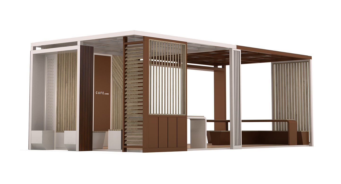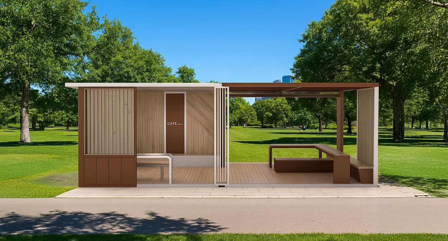카페 모듈 파빌리온 (Cafe Module Pavilion)|PNDP-049 제품목록으로 바로가기 자료 및 바로가기 나라장터 바로연결 도면 다운로드 시공사진 보러가기 기타 카페 감성의 우드 패널과 오픈 라운지 구조를 결합해 휴식·대화·간단한 활동이 가능한 모듈형 쉼터입니다. 따뜻한 톤과 미니멀한 프레임으로 공원·캠퍼스·단지 어디서나 자연스럽게 어울리도록 디자인되었습니다. 제품명 카페 모듈 파빌리온 (Cafe Module Pavilion)|PNDP-049 물품식별번호 25953046 규격 8,000 x 3,800 x 2,800(H) 재질 stl, hard wood, galvanized, polycarbonate 카페 모듈 파빌리온 (Cafe Module Pavilion)|PNDP-049 물품식별번호 25953046 규격 8,000 x 3,800 x 2,800(H) 재질 stl, hard wood, galvanized, polycarbonate 기타 카페 감성의 우드 패널과 오픈 라운지 구조를 결합해 휴식·대화·간단한 활동이 가능한 모듈형 쉼터입니다. 따뜻한 톤과 미니멀한 프레임으로 공원·캠퍼스·단지 어디서나 자연스럽게 어울리도록 디자인되었습니다. 자료 및 바로가기 나라장터 바로연결 도면 다운로드 시공사진 보러가기