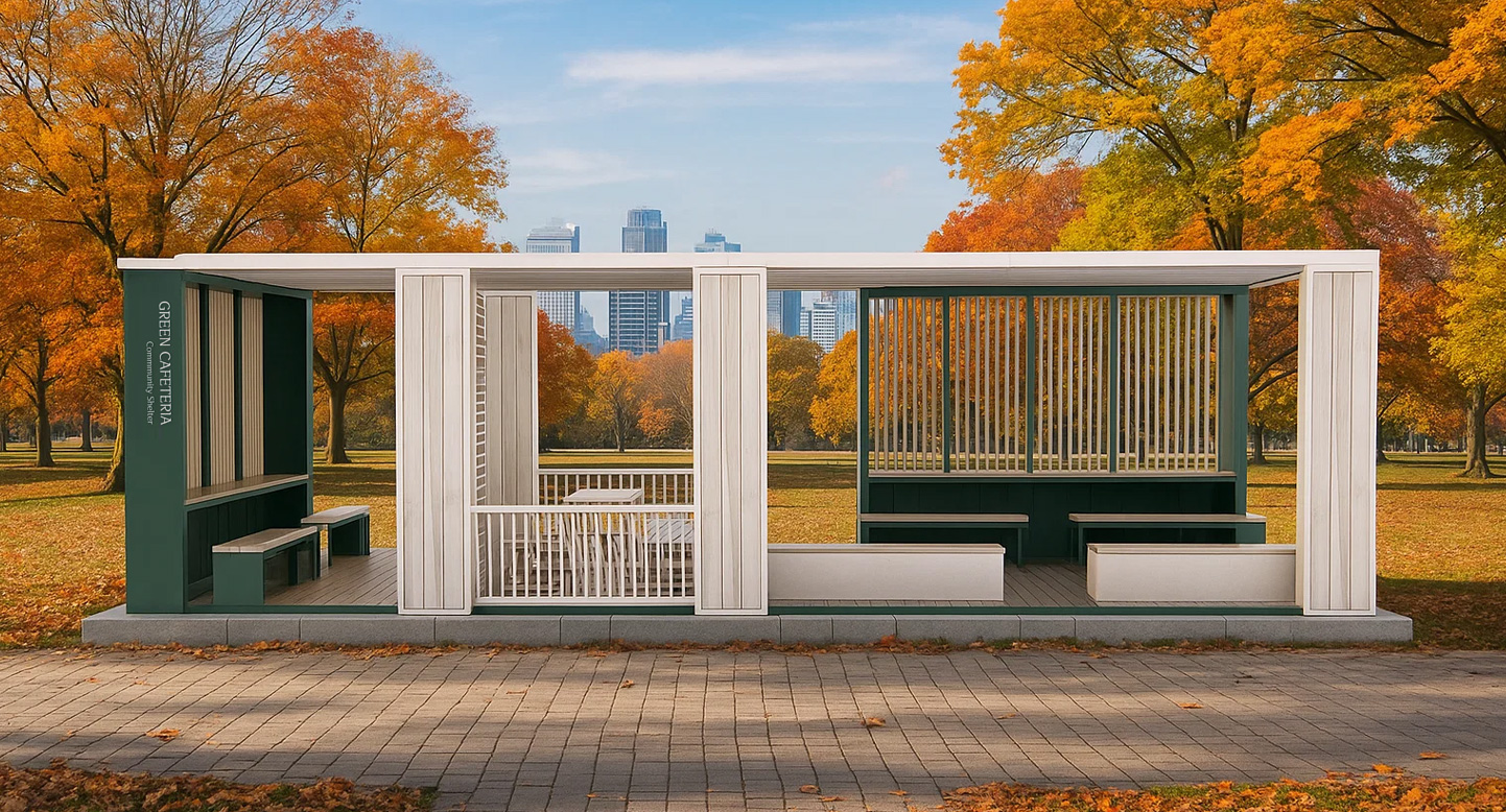 어반 카페테리아 파빌리온 (Urban Cafeteria Pavilion)|PNDP-047 제품목록으로 바로가기 자료 및 바로가기 나라장터 바로연결 도면 다운로드 시공사진 보러가기 기타 카페형 좌석과 우드 슬랫을 결합한 다목적 쉼터로, 휴식·대화·식사가 가능하며 개방적 프레임 디자인으로 다양한 공간에 자연스럽게 어울립니다. 제품명 어반 카페테리아 파빌리온 (Urban Cafeteria Pavilion)|PNDP-047 물품식별번호 25953044 규격 10,000 x 4,000 x 2,920 재질 stl, hard wood, galvanized, polycarbonate, hpl 어반 카페테리아 파빌리온 (Urban Cafeteria Pavilion)|PNDP-047 물품식별번호 25953044 규격 10,000 x 4,000 x 2,920 재질 stl, hard wood, galvanized, polycarbonate, hpl 기타 카페형 좌석과 우드 슬랫을 결합한 다목적 쉼터로, 휴식·대화·식사가 가능하며 개방적 프레임 디자인으로 다양한 공간에 자연스럽게 어울립니다. 자료 및 바로가기 나라장터 바로연결 도면 다운로드 시공사진 보러가기