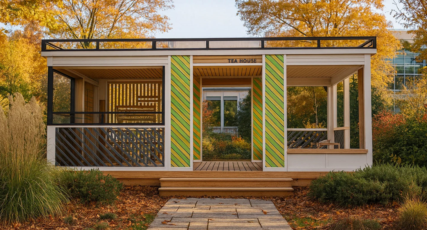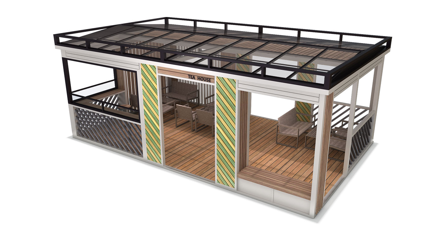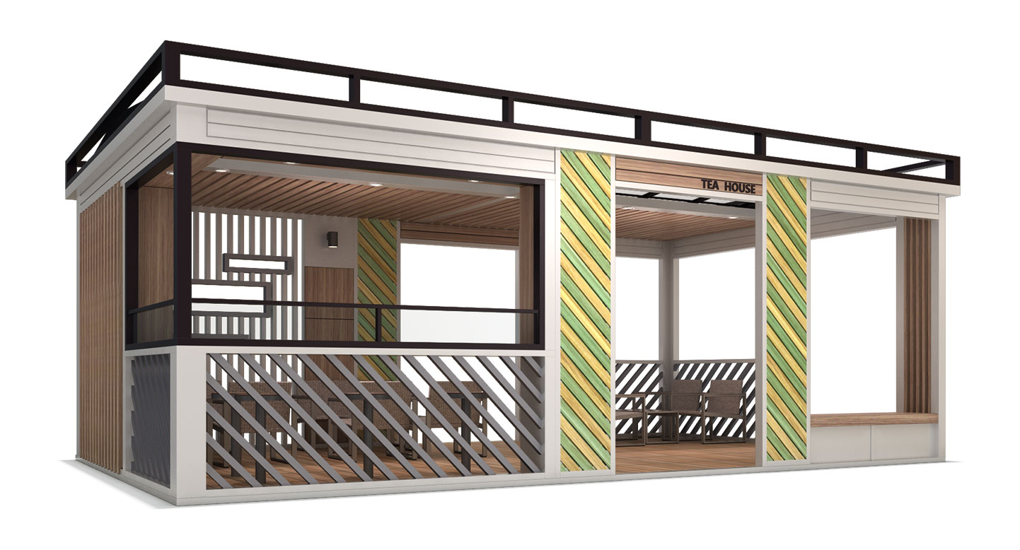 어반 스트라이프 티하우스 (Urban Stripe Tea House)|PNDP-041 제품목록으로 바로가기 자료 및 바로가기 나라장터 바로연결 도면 다운로드 시공사진 보러가기 기타 스트라이프 패널과 투명 지붕으로 밝고 경쾌한 분위기를 살린 티하우스입니다. 개방형 구조와 라운지 좌석으로 휴식과 소통이 자연스럽게 이루어지며, 조명과 함께 야간에도 감성적인 공간을 제공합니다. 제품명 어반 스트라이프 티하우스 (Urban Stripe Tea House)|PNDP-041 물품식별번호 24965801 규격 8,000 X 4,800 X 3,150(H) 재질 stl, hardwood, galvanized, polycarbonate, hpl 어반 스트라이프 티하우스 (Urban Stripe Tea House)|PNDP-041 물품식별번호 24965801 규격 8,000 X 4,800 X 3,150(H) 재질 stl, hardwood, galvanized, polycarbonate, hpl 기타 스트라이프 패널과 투명 지붕으로 밝고 경쾌한 분위기를 살린 티하우스입니다. 개방형 구조와 라운지 좌석으로 휴식과 소통이 자연스럽게 이루어지며, 조명과 함께 야간에도 감성적인 공간을 제공합니다. 자료 및 바로가기 나라장터 바로연결 도면 다운로드 시공사진 보러가기