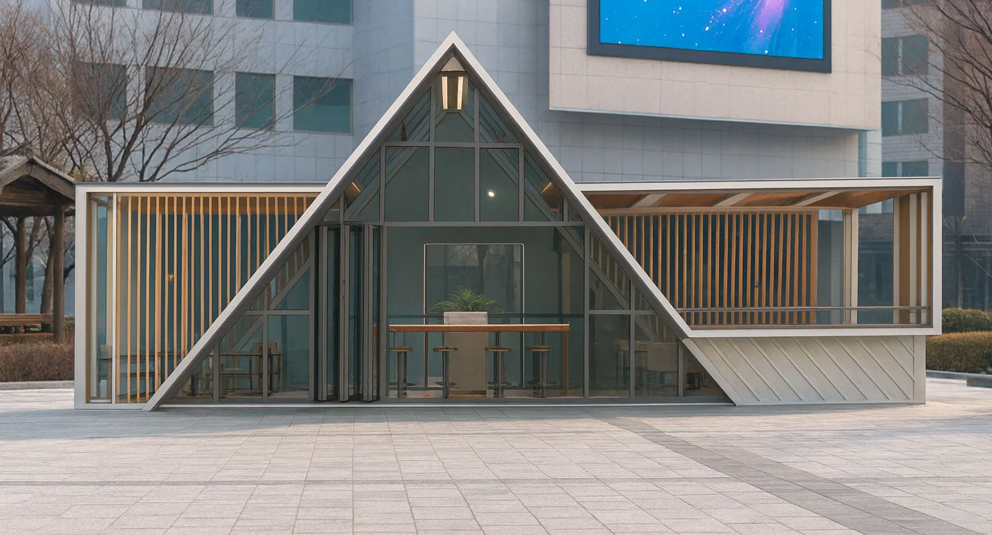 트라이앵글 라운지 (Triangle Lounge)|PNDP-040 제품목록으로 바로가기 자료 및 바로가기 나라장터 바로연결 도면 다운로드 시공사진 보러가기 기타 대형 삼각 프레임과 경사 지붕으로 개방감과 조형미를 강조한 파빌리온입니다. 유리·루버 조합으로 자연 채광을 극대화하고, 내부에서 주변 경관을 넓게 감상할 수 있는 공원·단지용 커뮤니티 쉼터입니다. 제품명 트라이앵글 라운지 (Triangle Lounge)|PNDP-040 물품식별번호 24965799 규격 12,000 X 5,000 X 5,128(H) 재질 stl, hardwood, galvanized, polycarbonate,강화유리 트라이앵글 라운지 (Triangle Lounge)|PNDP-040 물품식별번호 24965799 규격 12,000 X 5,000 X 5,128(H) 재질 stl, hardwood, galvanized, polycarbonate,강화유리 기타 대형 삼각 프레임과 경사 지붕으로 개방감과 조형미를 강조한 파빌리온입니다. 유리·루버 조합으로 자연 채광을 극대화하고, 내부에서 주변 경관을 넓게 감상할 수 있는 공원·단지용 커뮤니티 쉼터입니다. 자료 및 바로가기 나라장터 바로연결 도면 다운로드 시공사진 보러가기