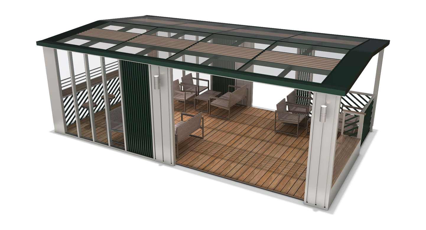 글라스 라운지 캐노피 (Glass Lounge Canopy)|PNDP-015 제품목록으로 바로가기 자료 및 바로가기 나라장터 바로연결 도면 다운로드 시공사진 보러가기 기타 투명 글래스 루프와 슬릿 패널로 개방감을 극대화한 프리미엄 쉼터입니다. 라운지 소파와 테이블을 배치해 편안한 휴식·대화 공간을 제공하며, 그린 톤 구조로 자연과 조화롭게 어울립니다. 제품명 글라스 라운지 캐노피 (Glass Lounge Canopy)|PNDP-015 물품식별번호 24965768 규격 8,000 X 4,700 X 2,784(H) 재질 stl, hardwood, galvanized, polycarbonate,강화유리 글라스 라운지 캐노피 (Glass Lounge Canopy)|PNDP-015 물품식별번호 24965768 규격 8,000 X 4,700 X 2,784(H) 재질 stl, hardwood, galvanized, polycarbonate,강화유리 기타 투명 글래스 루프와 슬릿 패널로 개방감을 극대화한 프리미엄 쉼터입니다. 라운지 소파와 테이블을 배치해 편안한 휴식·대화 공간을 제공하며, 그린 톤 구조로 자연과 조화롭게 어울립니다. 자료 및 바로가기 나라장터 바로연결 도면 다운로드 시공사진 보러가기