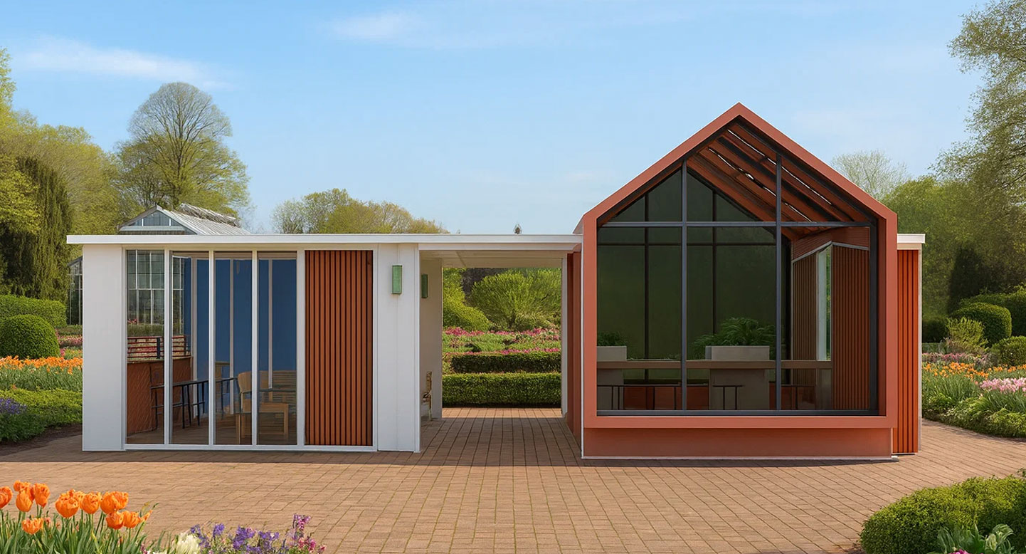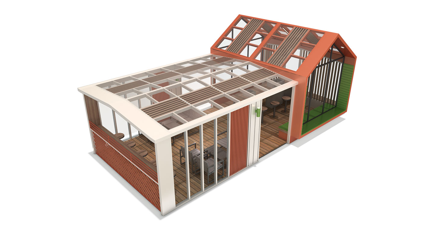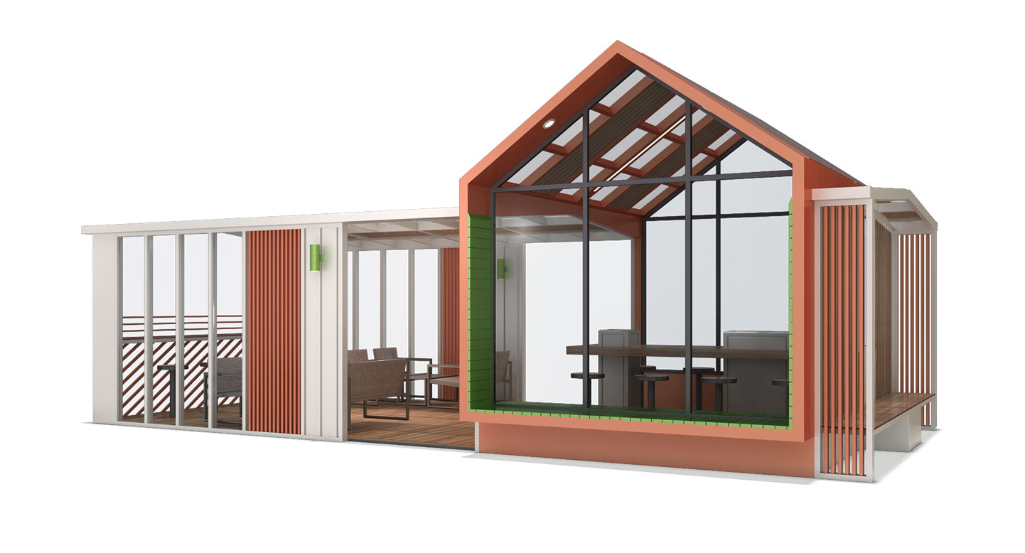 듀얼 하우스 파빌리온 (Dual House Pavilion)|PNDP-010 제품목록으로 바로가기 자료 및 바로가기 나라장터 바로연결 도면 다운로드 시공사진 보러가기 기타 두 가지 지붕을 조합한 독창적 구조로, 넓은 글래스 루프와 우드 루버가 채광과 개방감을 강조합니다. 내부는 카페형 좌석과 바 테이블을 분리해 다양한 활동이 가능한 복합 라운지 공간으로 구성했습니다. 제품명 듀얼 하우스 파빌리온 (Dual House Pavilion)|PNDP-010 물품식별번호 24965765 규격 10,000 X 5,000 X 4,075(H) 재질 stl, hard wood, galvanized, polycarbonate,강화유리 듀얼 하우스 파빌리온 (Dual House Pavilion)|PNDP-010 물품식별번호 24965765 규격 10,000 X 5,000 X 4,075(H) 재질 stl, hard wood, galvanized, polycarbonate,강화유리 기타 두 가지 지붕을 조합한 독창적 구조로, 넓은 글래스 루프와 우드 루버가 채광과 개방감을 강조합니다. 내부는 카페형 좌석과 바 테이블을 분리해 다양한 활동이 가능한 복합 라운지 공간으로 구성했습니다. 자료 및 바로가기 나라장터 바로연결 도면 다운로드 시공사진 보러가기