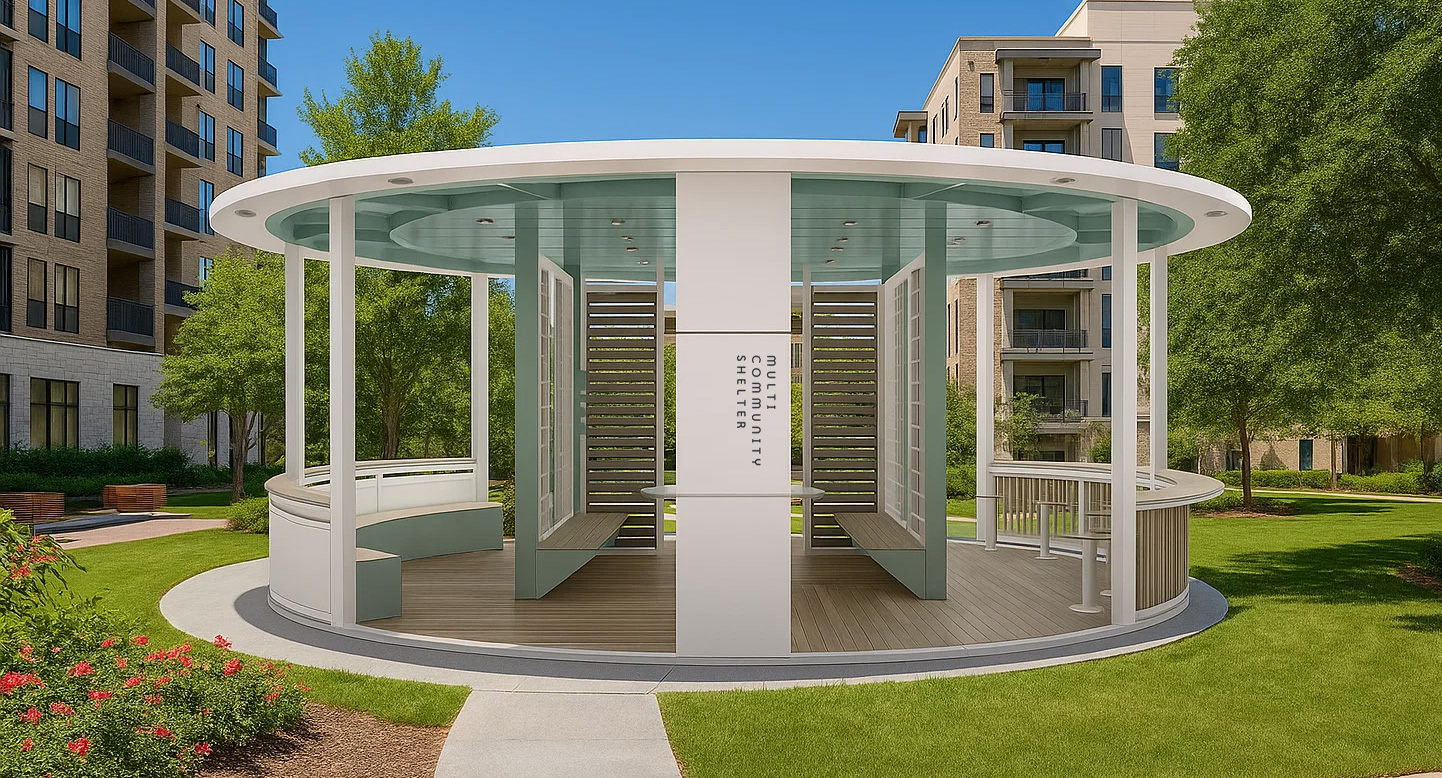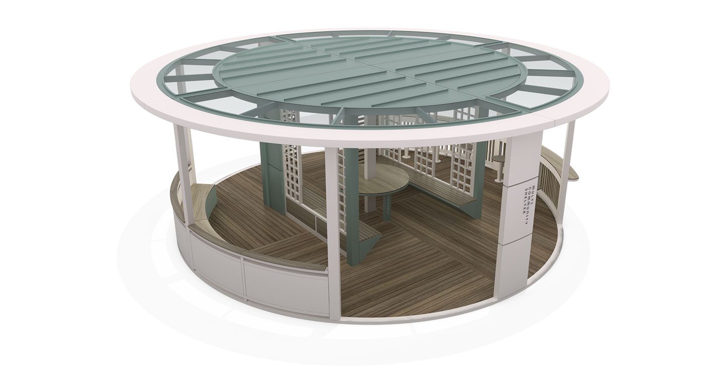 라운드 커뮤니티 라운지 (Round Community Lounge)|PNDP-075 제품목록으로 바로가기 자료 및 바로가기 나라장터 바로연결 도면 다운로드 시공사진 보러가기 기타 부드러운 라운드 형태와 파스텔 그린 컬러로 단지와 자연에 조화되며, 개방형 구조와 벤치·바테이블 구성으로 휴식과 소규모 커뮤니티 활동을 편안하게 지원하는 쉼터입니다. 제품명 라운드 커뮤니티 라운지 (Round Community Lounge)|PNDP-075 물품식별번호 25953072 규격 8,000 x 8,000 x 2,900(H) 재질 stl, hard wood, galvanized, polycarbonate, hpl 라운드 커뮤니티 라운지 (Round Community Lounge)|PNDP-075 물품식별번호 25953072 규격 8,000 x 8,000 x 2,900(H) 재질 stl, hard wood, galvanized, polycarbonate, hpl 기타 부드러운 라운드 형태와 파스텔 그린 컬러로 단지와 자연에 조화되며, 개방형 구조와 벤치·바테이블 구성으로 휴식과 소규모 커뮤니티 활동을 편안하게 지원하는 쉼터입니다. 자료 및 바로가기 나라장터 바로연결 도면 다운로드 시공사진 보러가기