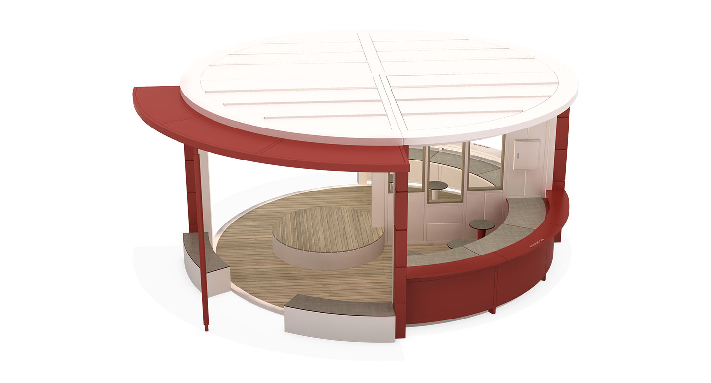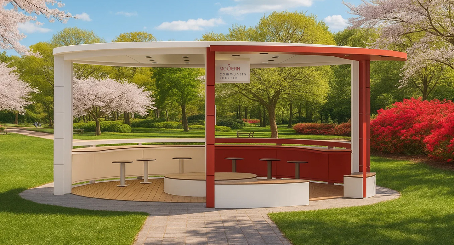 스프링 카페 쉘터 (Spring Café Shelter)|PNDP-074 제품목록으로 바로가기 자료 및 바로가기 나라장터 바로연결 도면 다운로드 시공사진 보러가기 기타 부드러운 곡선 지붕과 화이트·레드 포인트로 밝은 봄 분위기를 담은 쉼터입니다. 반원형 테이블과 스툴로 휴식과 대화를 자연스럽게 유도하며, 개방감 있는 구조로 공원 풍경과 조화를 이룹니다. 제품명 스프링 카페 쉘터 (Spring Café Shelter)|PNDP-074 물품식별번호 25953071 규격 6,700 x 6,700 x 2,900(H) 재질 stl, hard wood, polycarbonate, hpl 스프링 카페 쉘터 (Spring Café Shelter)|PNDP-074 물품식별번호 25953071 규격 6,700 x 6,700 x 2,900(H) 재질 stl, hard wood, polycarbonate, hpl 기타 부드러운 곡선 지붕과 화이트·레드 포인트로 밝은 봄 분위기를 담은 쉼터입니다. 반원형 테이블과 스툴로 휴식과 대화를 자연스럽게 유도하며, 개방감 있는 구조로 공원 풍경과 조화를 이룹니다. 자료 및 바로가기 나라장터 바로연결 도면 다운로드 시공사진 보러가기