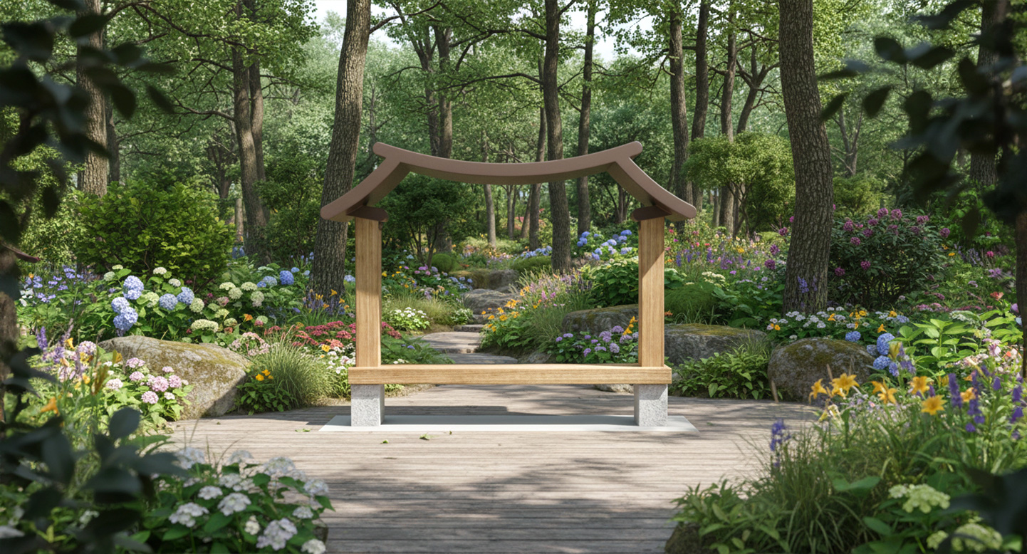 한옥 쉼터 벤치 (Hanok Shelter Bench)|PNDP-1202 제품목록으로 바로가기 자료 및 바로가기 나라장터 바로연결 도면 다운로드 시공사진 보러가기 기타 전통 기와지붕의 곡선을 현대적으로 재해석한 벤치로, 목재 기둥과 기와형 상부가 어우러져 한국적 멋과 편안한 휴식 기능을 동시에 제공합니다. 공원·마을길·전통거리 등에 자연스럽게 스며드는 디자인입니다. 제품명 한옥 쉼터 벤치 (Hanok Shelter Bench)|PNDP-1202 물품식별번호 25009483 규격 2,768 X 800 X 2,104(H) 재질 stl, galvanized, hard wood,화강석 한옥 쉼터 벤치 (Hanok Shelter Bench)|PNDP-1202 물품식별번호 25009483 규격 2,768 X 800 X 2,104(H) 재질 stl, galvanized, hard wood,화강석 기타 전통 기와지붕의 곡선을 현대적으로 재해석한 벤치로, 목재 기둥과 기와형 상부가 어우러져 한국적 멋과 편안한 휴식 기능을 동시에 제공합니다. 공원·마을길·전통거리 등에 자연스럽게 스며드는 디자인입니다. 자료 및 바로가기 나라장터 바로연결 도면 다운로드 시공사진 보러가기