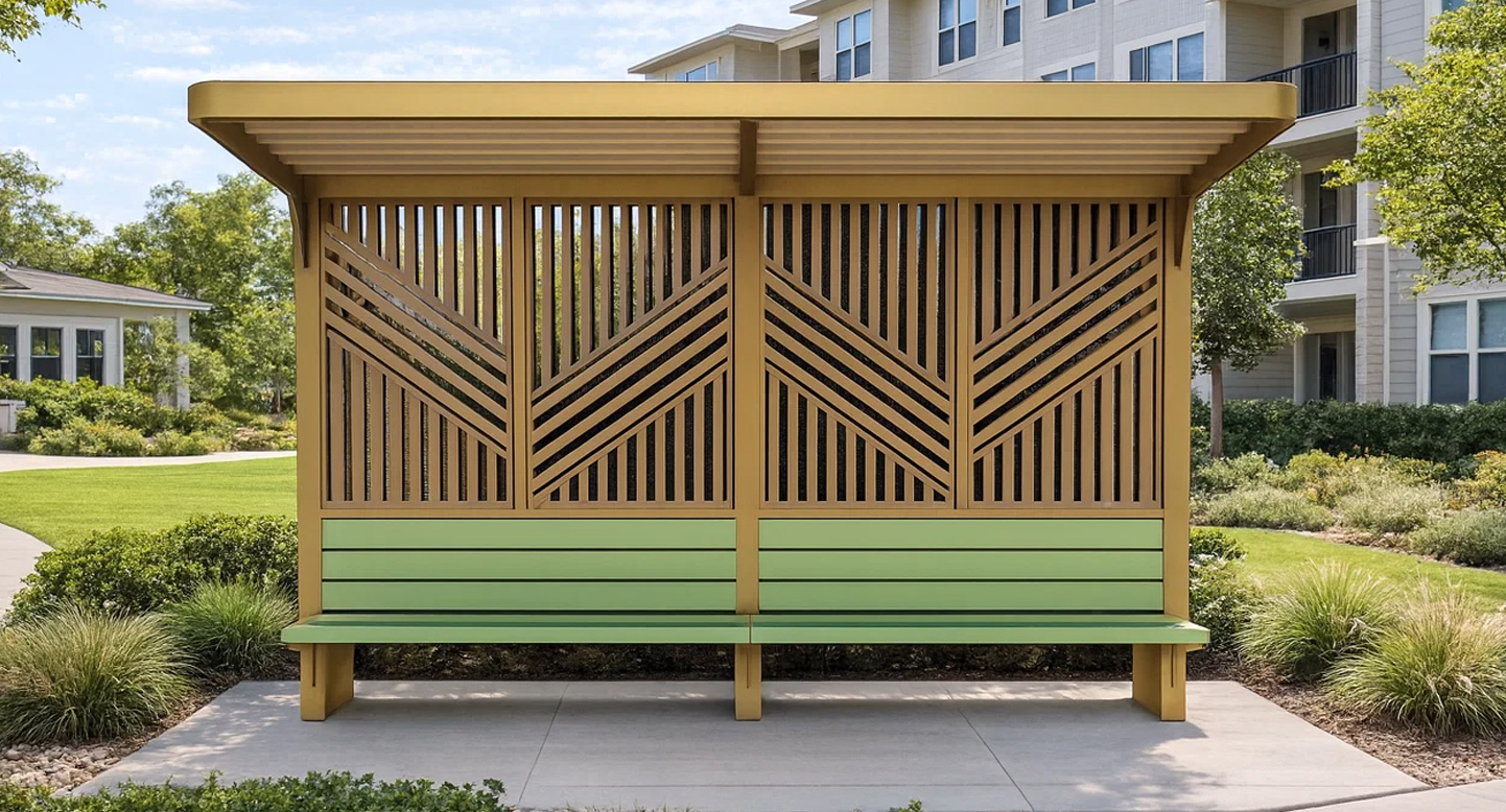 골든루버 쉘터 (Golden Louver Shelter)|PNDP-1102 제품목록으로 바로가기 자료 및 바로가기 나라장터 바로연결 도면 다운로드 시공사진 보러가기 기타 황금톤 프레임과 패턴 루버를 조합해 자연 채광을 아름답게 연출하며 안정적인 휴식을 제공하는 고급형 쉼터입니다. 제품명 골든루버 쉘터 (Golden Louver Shelter)|PNDP-1102 물품식별번호 24963993 규격 3,320 X 1,700 X 2,300(H) 재질 stl, galvanized, hard wood, polycarbonate 골든루버 쉘터 (Golden Louver Shelter)|PNDP-1102 물품식별번호 24963993 규격 3,320 X 1,700 X 2,300(H) 재질 stl, galvanized, hard wood, polycarbonate 기타 황금톤 프레임과 패턴 루버를 조합해 자연 채광을 아름답게 연출하며 안정적인 휴식을 제공하는 고급형 쉼터입니다. 자료 및 바로가기 나라장터 바로연결 도면 다운로드 시공사진 보러가기