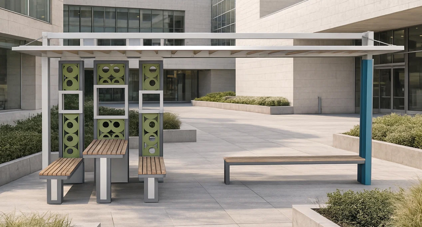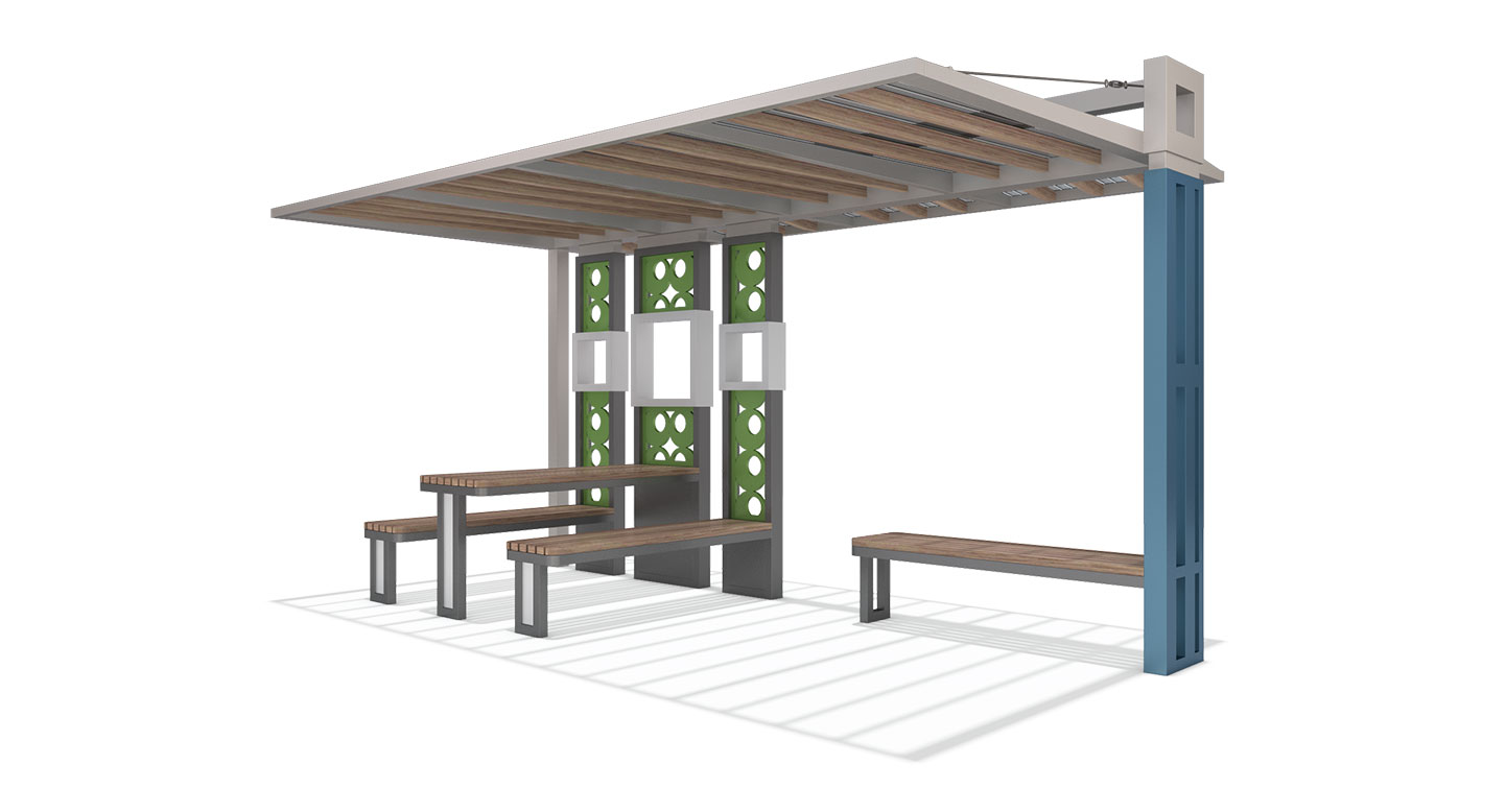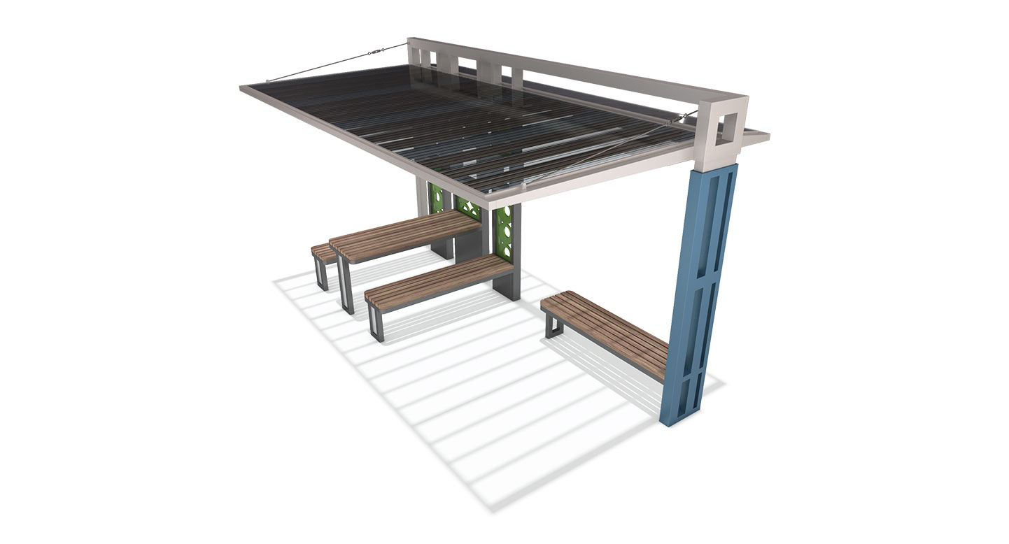 어반코어 쉘터 (Urban Core Shelter)|PNDP-267 제품목록으로 바로가기 자료 및 바로가기 나라장터 바로연결 도면 다운로드 시공사진 보러가기 기타 슬랫 지붕과 컬러 포인트 기둥을 조합해 도시 공간에 활력을 주며 시원한 그늘과 휴식을 제공하는 모던 쉼터입니다. 제품명 어반코어 쉘터 (Urban Core Shelter)|PNDP-267 물품식별번호 24955338 규격 4,600 X 2,600 X 2,700(H) 재질 stl, galvanized, hard wood, polycarbonate 어반코어 쉘터 (Urban Core Shelter)|PNDP-267 물품식별번호 24955338 규격 4,600 X 2,600 X 2,700(H) 재질 stl, galvanized, hard wood, polycarbonate 기타 슬랫 지붕과 컬러 포인트 기둥을 조합해 도시 공간에 활력을 주며 시원한 그늘과 휴식을 제공하는 모던 쉼터입니다. 자료 및 바로가기 나라장터 바로연결 도면 다운로드 시공사진 보러가기