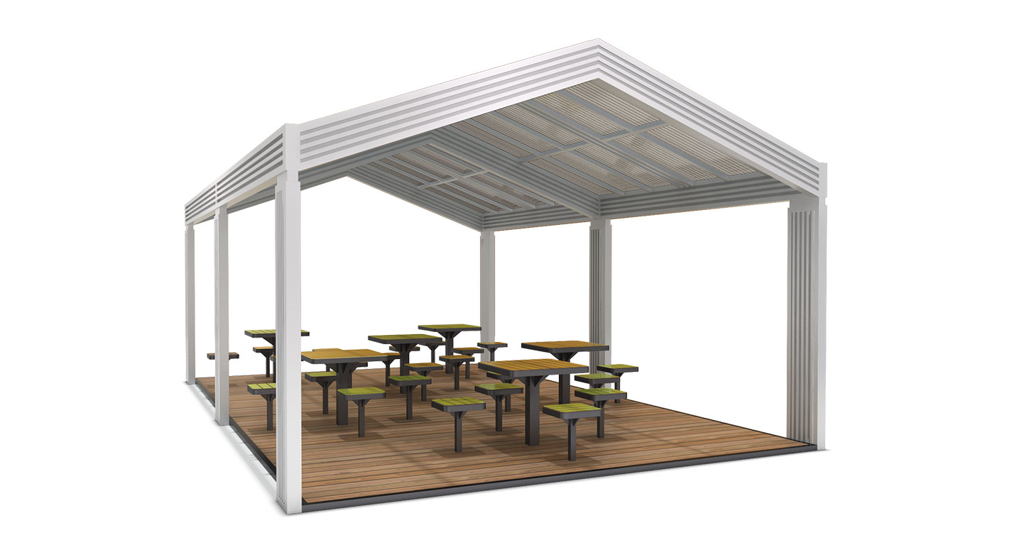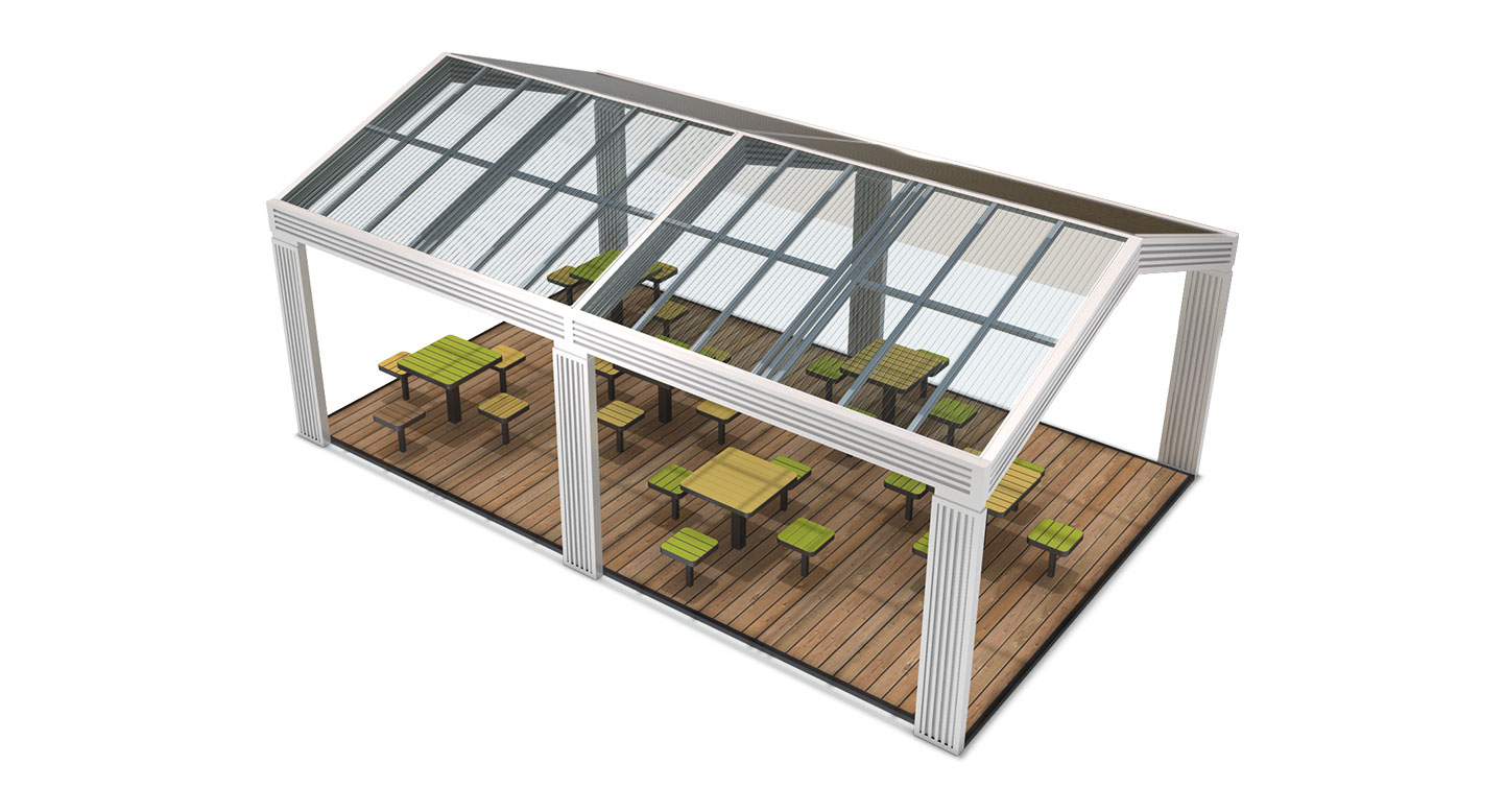 라이트가든 파빌리온 (Light Garden Pavilion)|PNDP-781 제품목록으로 바로가기 자료 및 바로가기 나라장터 바로연결 도면 다운로드 시공사진 보러가기 기타 화이트 프레임과 투명 루버 지붕으로 밝고 개방감을 강조한 대형 파빌리온입니다. 다양한 테이블 구성을 통해 여러 이용자가 동시에 편안하게 머무를 수 있으며, 공원·학교·캠핑장 등 다중 이용 공간에 자연스럽게 어울립니다. 제품명 라이트가든 파빌리온 (Light Garden Pavilion)|PNDP-781 물품식별번호 24965836 규격 7,900 X 5,000 X 3,570(H) 재질 stl, galvanized, hpl, polycarbonate 라이트가든 파빌리온 (Light Garden Pavilion)|PNDP-781 물품식별번호 24965836 규격 7,900 X 5,000 X 3,570(H) 재질 stl, galvanized, hpl, polycarbonate 기타 화이트 프레임과 투명 루버 지붕으로 밝고 개방감을 강조한 대형 파빌리온입니다. 다양한 테이블 구성을 통해 여러 이용자가 동시에 편안하게 머무를 수 있으며, 공원·학교·캠핑장 등 다중 이용 공간에 자연스럽게 어울립니다. 자료 및 바로가기 나라장터 바로연결 도면 다운로드 시공사진 보러가기