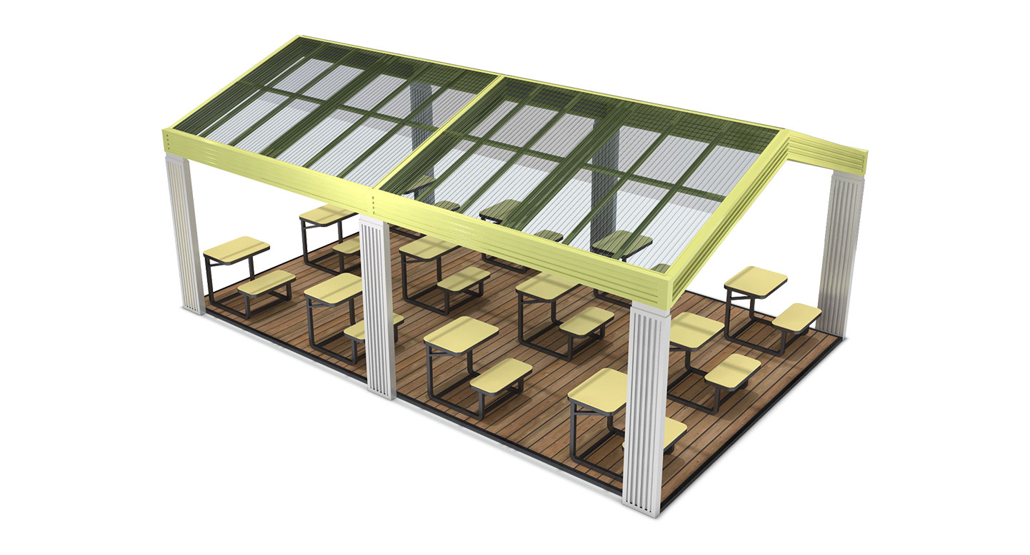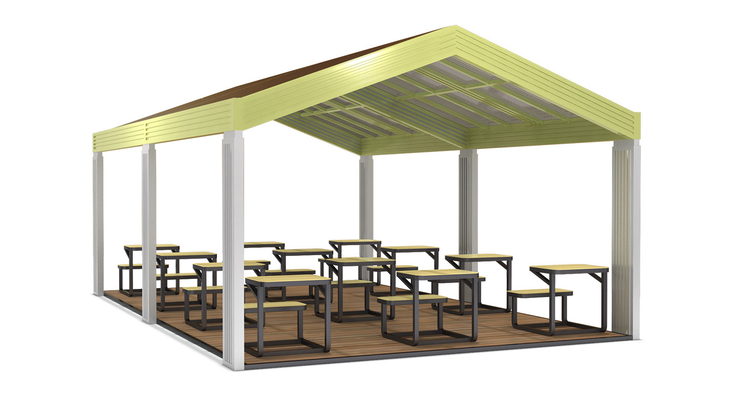 옐로그리드 파빌리온 (Yellow Grid Pavilion)|PNDP-778 제품목록으로 바로가기 자료 및 바로가기 나라장터 바로연결 도면 다운로드 시공사진 보러가기 기타 부드러운 옐로우 프레임과 투명 루버 지붕으로 밝고 친근한 분위기를 만든 쉼터입니다. 독립 좌석을 배치해 다양한 인원이 편하게 이용할 수 있도록 설계되었습니다. 제품명 옐로그리드 파빌리온 (Yellow Grid Pavilion)|PNDP-778 물품식별번호 24965833 규격 7,900 X 5,000 X 3,570(H) 재질 stl, galvanized, hpl, polycarbonate 옐로그리드 파빌리온 (Yellow Grid Pavilion)|PNDP-778 물품식별번호 24965833 규격 7,900 X 5,000 X 3,570(H) 재질 stl, galvanized, hpl, polycarbonate 기타 부드러운 옐로우 프레임과 투명 루버 지붕으로 밝고 친근한 분위기를 만든 쉼터입니다. 독립 좌석을 배치해 다양한 인원이 편하게 이용할 수 있도록 설계되었습니다. 자료 및 바로가기 나라장터 바로연결 도면 다운로드 시공사진 보러가기