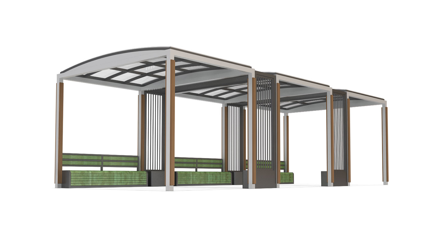 트리플 아치 쉼터 (Triple Arch Shelter)|PNDP-767 제품목록으로 바로가기 자료 및 바로가기 나라장터 바로연결 도면 다운로드 시공사진 보러가기 기타 3개의 아치형 루프를 모듈로 연결해 개방감과 확장성을 강조한 파빌리온입니다. 투명 지붕과 스틸·우드 조합이 현대적 분위기를 만들며, 긴 벤치 배치로 다수가 편안하게 이용할 수 있습니다. 제품명 트리플 아치 쉼터 (Triple Arch Shelter)|PNDP-767 물품식별번호 24955838 규격 9,100 X 3,860 X 2,820(H) 재질 stl, galvanized, hard wood, polycarbonate 트리플 아치 쉼터 (Triple Arch Shelter)|PNDP-767 물품식별번호 24955838 규격 9,100 X 3,860 X 2,820(H) 재질 stl, galvanized, hard wood, polycarbonate 기타 3개의 아치형 루프를 모듈로 연결해 개방감과 확장성을 강조한 파빌리온입니다. 투명 지붕과 스틸·우드 조합이 현대적 분위기를 만들며, 긴 벤치 배치로 다수가 편안하게 이용할 수 있습니다. 자료 및 바로가기 나라장터 바로연결 도면 다운로드 시공사진 보러가기