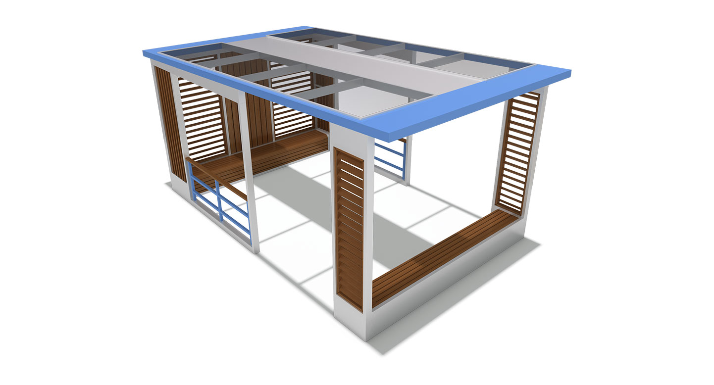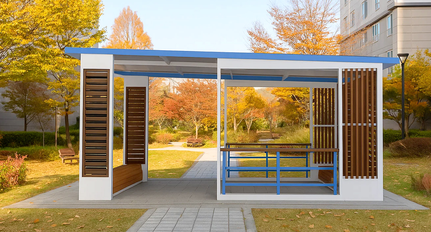 블루 스트림 파빌리온 (Blue Stream Pavilion)|PNDP-737 제품목록으로 바로가기 자료 및 바로가기 나라장터 바로연결 도면 다운로드 시공사진 보러가기 기타 상부와 프레임에 블루 포인트 컬러를 적용해 밝고 산뜻한 분위기를 연출했으며, 우드 루버와 테이블형 좌석을 조합해 실용성과 개방감을 동시에 살린 디자인입니다. 제품명 블루 스트림 파빌리온 (Blue Stream Pavilion)|PNDP-737 물품식별번호 24955805 규격 6,000 X 3,500 X 2,910(H) 재질 stl, galvanized, hard wood, polycarbonate 블루 스트림 파빌리온 (Blue Stream Pavilion)|PNDP-737 물품식별번호 24955805 규격 6,000 X 3,500 X 2,910(H) 재질 stl, galvanized, hard wood, polycarbonate 기타 상부와 프레임에 블루 포인트 컬러를 적용해 밝고 산뜻한 분위기를 연출했으며, 우드 루버와 테이블형 좌석을 조합해 실용성과 개방감을 동시에 살린 디자인입니다. 자료 및 바로가기 나라장터 바로연결 도면 다운로드 시공사진 보러가기