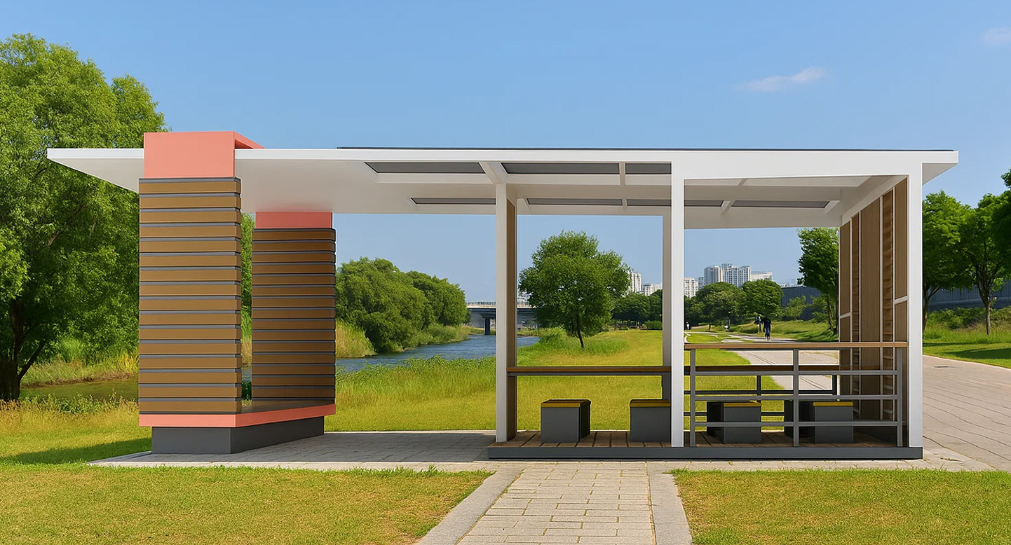 코랄 라운지 쉼터 (Coral Lounge Shelter)|PNDP-736 제품목록으로 바로가기 자료 및 바로가기 나라장터 바로연결 도면 다운로드 시공사진 보러가기 기타 코랄 컬러 포인트 기둥과 우드 슬랫을 조합해 산뜻한 분위기를 연출한 쉼터로, 테이블형 구조를 적용해 휴식과 소규모 모임이 모두 가능한 친환경형 공간입니다. 제품명 코랄 라운지 쉼터 (Coral Lounge Shelter)|PNDP-736 물품식별번호 24965851 규격 8,500 X 4,000 X 3,100(H) 재질 stl, galvanized, hard wood, polycarbonate 코랄 라운지 쉼터 (Coral Lounge Shelter)|PNDP-736 물품식별번호 24965851 규격 8,500 X 4,000 X 3,100(H) 재질 stl, galvanized, hard wood, polycarbonate 기타 코랄 컬러 포인트 기둥과 우드 슬랫을 조합해 산뜻한 분위기를 연출한 쉼터로, 테이블형 구조를 적용해 휴식과 소규모 모임이 모두 가능한 친환경형 공간입니다. 자료 및 바로가기 나라장터 바로연결 도면 다운로드 시공사진 보러가기