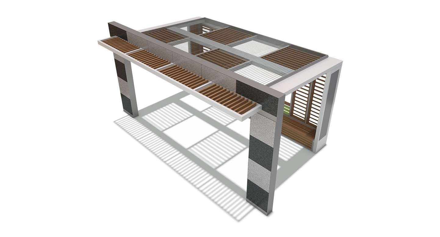 플로라 뷰 파빌리온 (Flora View Pavilion)|PNDP-734 제품목록으로 바로가기 자료 및 바로가기 나라장터 바로연결 도면 다운로드 시공사진 보러가기 기타 견고한 석재 패널과 우드 루버를 조합해 안정감과 따뜻함을 담았으며, 중앙은 넓게 개방해 자연 풍경을 그대로 즐길 수 있도록 설계했습니다. 제품명 플로라 뷰 파빌리온 (Flora View Pavilion)|PNDP-734 물품식별번호 24955800 규격 6,000 X 3,700 X 3,100(H) 재질 stl, galvanized, hard wood, hpl, polycarbonate 플로라 뷰 파빌리온 (Flora View Pavilion)|PNDP-734 물품식별번호 24955800 규격 6,000 X 3,700 X 3,100(H) 재질 stl, galvanized, hard wood, hpl, polycarbonate 기타 견고한 석재 패널과 우드 루버를 조합해 안정감과 따뜻함을 담았으며, 중앙은 넓게 개방해 자연 풍경을 그대로 즐길 수 있도록 설계했습니다. 자료 및 바로가기 나라장터 바로연결 도면 다운로드 시공사진 보러가기