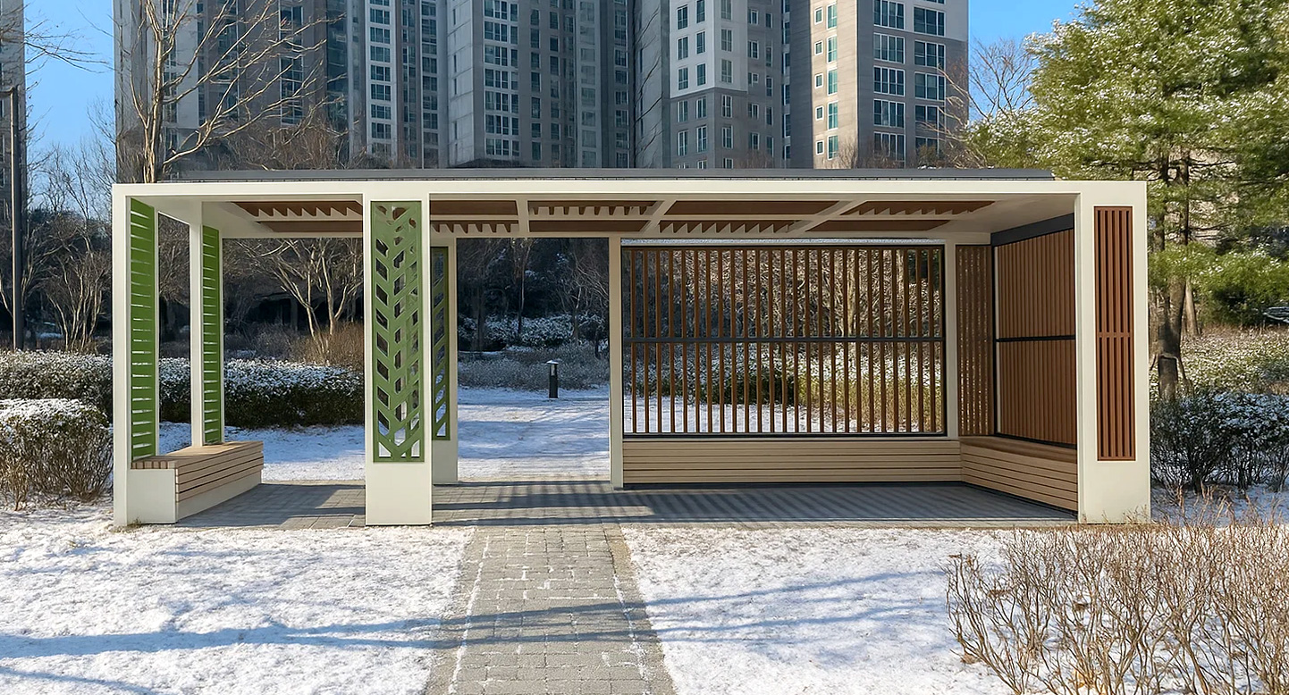 그린브리즈 파빌리온 (Green Breeze Pavilion)|PNDP-722 제품목록으로 바로가기 자료 및 바로가기 나라장터 바로연결 도면 다운로드 시공사진 보러가기 기타 화이트 구조와 연그린 패널, 우드 슬랫을 조화롭게 구성해 사계절 어디서나 편안한 휴식을 제공하는 설계입니다. 넓은 개방감을 통해 주변 풍경을 자연스럽게 끌어들이며, 도시·단지·공원에 모두 어울리는 감각적인 파빌리온입니다. 제품명 그린브리즈 파빌리온 (Green Breeze Pavilion)|PNDP-722 물품식별번호 24955674 규격 7,500 X 3,600 X 2,700(H) 재질 stl, galvanized, hard wood, polycarbonate 그린브리즈 파빌리온 (Green Breeze Pavilion)|PNDP-722 물품식별번호 24955674 규격 7,500 X 3,600 X 2,700(H) 재질 stl, galvanized, hard wood, polycarbonate 기타 화이트 구조와 연그린 패널, 우드 슬랫을 조화롭게 구성해 사계절 어디서나 편안한 휴식을 제공하는 설계입니다. 넓은 개방감을 통해 주변 풍경을 자연스럽게 끌어들이며, 도시·단지·공원에 모두 어울리는 감각적인 파빌리온입니다. 자료 및 바로가기 나라장터 바로연결 도면 다운로드 시공사진 보러가기