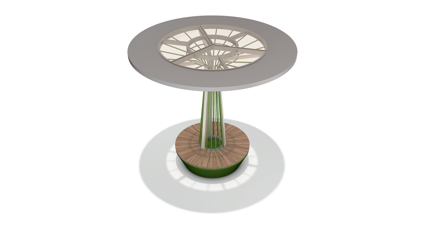 트리돔 쉼터 (Tree Dome Shelter)|PNDP-613 제품목록으로 바로가기 자료 및 바로가기 나라장터 바로연결 도면 다운로드 시공사진 보러가기 기타 수목 형태의 중앙 기둥과 돔형 천창을 결합해 자연의 그늘감을 표현한 쉼터입니다. 브랜치 패턴이 시각적 포인트가 되며, 중앙 원형 벤치가 아늑한 휴식 공간을 제공합니다. 제품명 트리돔 쉼터 (Tree Dome Shelter)|PNDP-613 물품식별번호 24955416 규격 3,200 X 3,200 X 2,800(H) 재질 stl, galvanized, polycarbonate, hard wood 트리돔 쉼터 (Tree Dome Shelter)|PNDP-613 물품식별번호 24955416 규격 3,200 X 3,200 X 2,800(H) 재질 stl, galvanized, polycarbonate, hard wood 기타 수목 형태의 중앙 기둥과 돔형 천창을 결합해 자연의 그늘감을 표현한 쉼터입니다. 브랜치 패턴이 시각적 포인트가 되며, 중앙 원형 벤치가 아늑한 휴식 공간을 제공합니다. 자료 및 바로가기 나라장터 바로연결 도면 다운로드 시공사진 보러가기