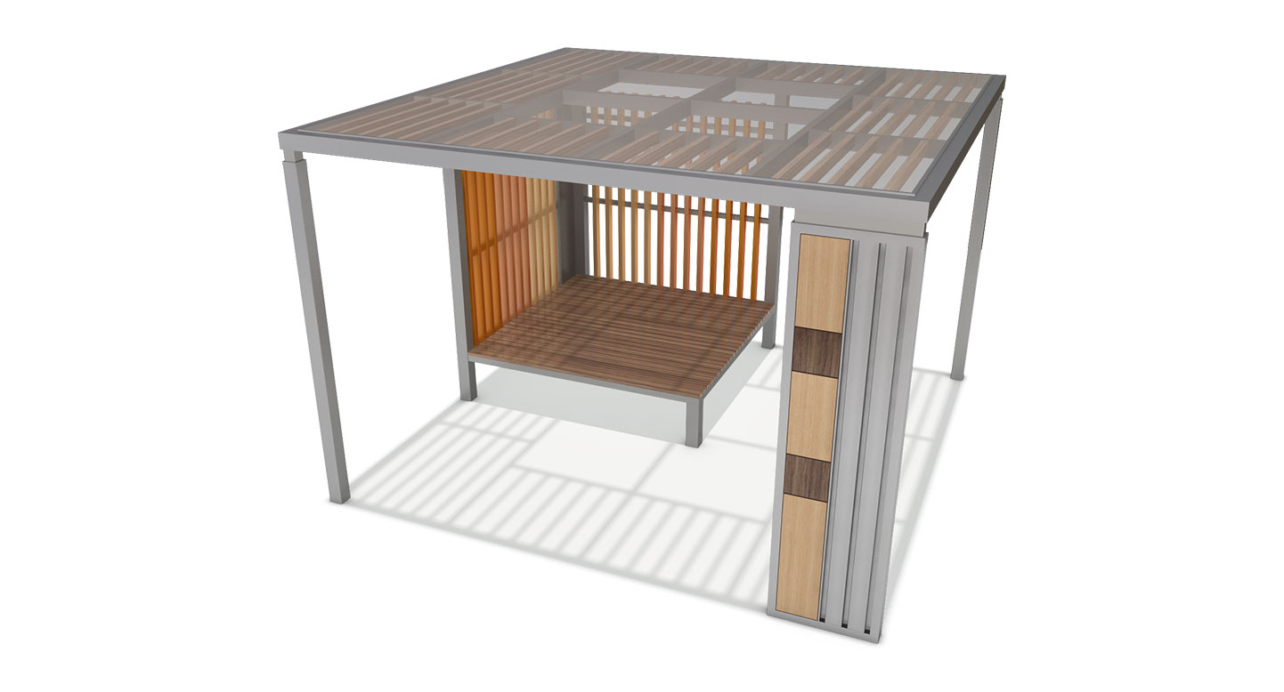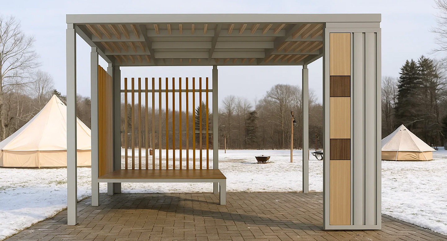 우드모듈 퍼걸러 (Wood Module Pergola)|PNDP-513 제품목록으로 바로가기 자료 및 바로가기 나라장터 바로연결 도면 다운로드 시공사진 보러가기 기타 심플한 프레임에 우드 슬랫과 패널 포인트를 더해 자연 속에서 안정감 있는 휴식을 제공하는 구조입니다. 개방감을 유지하면서도 적절한 프라이버시를 만들어 캠핑장·공원 등 다양한 공간에 조화롭게 어울리도록 설계했습니다. 제품명 우드모듈 퍼걸러 (Wood Module Pergola)|PNDP-513 물품식별번호 24955941 규격 3,800 X 3,800 X 2,575(H) 재질 stl, galvanized, hard wood, polycarbonate 우드모듈 퍼걸러 (Wood Module Pergola)|PNDP-513 물품식별번호 24955941 규격 3,800 X 3,800 X 2,575(H) 재질 stl, galvanized, hard wood, polycarbonate 기타 심플한 프레임에 우드 슬랫과 패널 포인트를 더해 자연 속에서 안정감 있는 휴식을 제공하는 구조입니다. 개방감을 유지하면서도 적절한 프라이버시를 만들어 캠핑장·공원 등 다양한 공간에 조화롭게 어울리도록 설계했습니다. 자료 및 바로가기 나라장터 바로연결 도면 다운로드 시공사진 보러가기