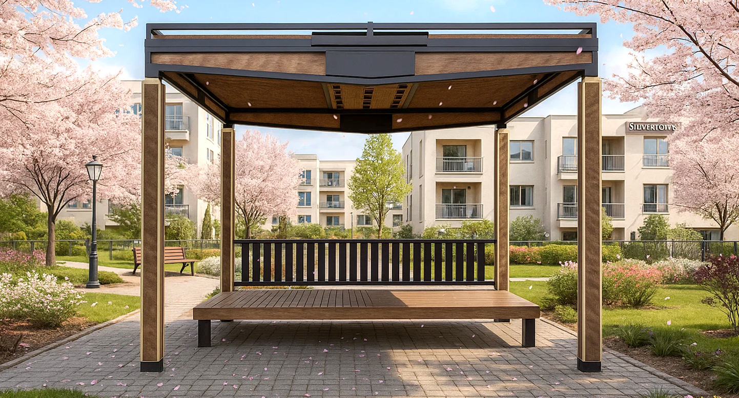우드테라스 파빌리온 (Wood Terrace Pavilion)|PNDP-503 제품목록으로 바로가기 자료 및 바로가기 나라장터 바로연결 도면 다운로드 시공사진 보러가기 기타 고급 우드톤과 구조미를 강조한 지붕 라인을 조합해 단지·정원 공간에서 품격 있는 휴식을 제공하는 구조입니다. 넓은 데크형 바닥과 안정감 있는 난간을 더해 누구나 편안하게 머무를 수 있도록 설계했습니다. 제품명 우드테라스 파빌리온 (Wood Terrace Pavilion)|PNDP-503 물품식별번호 24965937 규격 4,000 X 4,000 X 3,035(H) 재질 stl,galvanized,hard wood,polycarbonate,birch plywood 우드테라스 파빌리온 (Wood Terrace Pavilion)|PNDP-503 물품식별번호 24965937 규격 4,000 X 4,000 X 3,035(H) 재질 stl,galvanized,hard wood,polycarbonate,birch plywood 기타 고급 우드톤과 구조미를 강조한 지붕 라인을 조합해 단지·정원 공간에서 품격 있는 휴식을 제공하는 구조입니다. 넓은 데크형 바닥과 안정감 있는 난간을 더해 누구나 편안하게 머무를 수 있도록 설계했습니다. 자료 및 바로가기 나라장터 바로연결 도면 다운로드 시공사진 보러가기