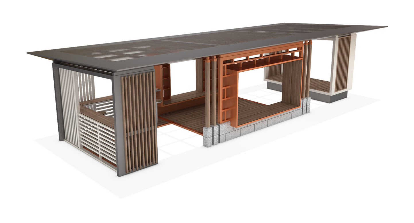 프레임 타워 라운지 (Frame Tower Lounge)|PNDP-032 제품목록으로 바로가기 자료 및 바로가기 나라장터 바로연결 도면 다운로드 시공사진 보러가기 기타 중앙 오렌지 포털이 공간 흐름을 강조하고, 서로 다른 루버 패턴이 영역을 자연스럽게 분리하는 모듈형 쉼터입니다. 우드톤과 메탈 구조가 조화를 이루어 공원·단지 어디서나 현대적이고 안정적인 분위기를 제공합니다. 제품명 프레임 타워 라운지 (Frame Tower Lounge)|PNDP-032 물품식별번호 24965789 규격 12,000 X 5,000 X 3,150(H) 재질 stl, hardwood, galvanized, polycarbonate, hpl, 화강석 프레임 타워 라운지 (Frame Tower Lounge)|PNDP-032 물품식별번호 24965789 규격 12,000 X 5,000 X 3,150(H) 재질 stl, hardwood, galvanized, polycarbonate, hpl, 화강석 기타 중앙 오렌지 포털이 공간 흐름을 강조하고, 서로 다른 루버 패턴이 영역을 자연스럽게 분리하는 모듈형 쉼터입니다. 우드톤과 메탈 구조가 조화를 이루어 공원·단지 어디서나 현대적이고 안정적인 분위기를 제공합니다. 자료 및 바로가기 나라장터 바로연결 도면 다운로드 시공사진 보러가기