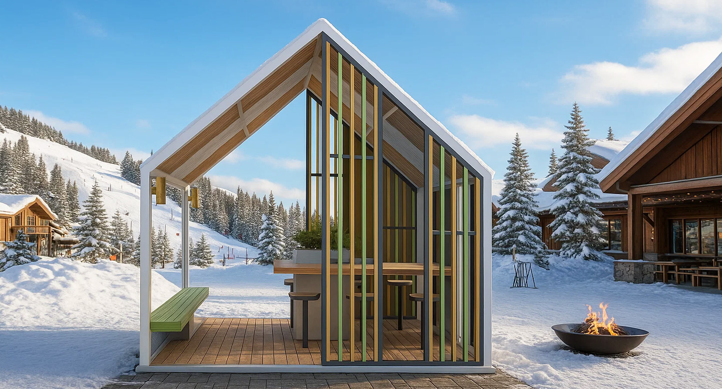 윈터 라운지 하우스 (Winter Lounge House)|PNDP-025 제품목록으로 바로가기 자료 및 바로가기 나라장터 바로연결 도면 다운로드 시공사진 보러가기 기타 (조명포함) 사선 박공지붕과 따뜻한 우드 라인, 그리고 컬러 슬랫을 조합해 겨울 자연 속에서도 포근함을 느낄 수 있도록 설계된 쉼터입니다. 바람을 막아주는 측면 구조와 아늑한 좌석 배치로 스키장·리조트 등에서 편안한 휴식 공간을 제공합니다. 제품명 윈터 라운지 하우스 (Winter Lounge House)|PNDP-025 물품식별번호 24965781 규격 4,000 X 4,000 X 3,878(H) 재질 stl, hardwood, galvanized, polycarbonate 윈터 라운지 하우스 (Winter Lounge House)|PNDP-025 물품식별번호 24965781 규격 4,000 X 4,000 X 3,878(H) 재질 stl, hardwood, galvanized, polycarbonate 기타 (조명포함) 사선 박공지붕과 따뜻한 우드 라인, 그리고 컬러 슬랫을 조합해 겨울 자연 속에서도 포근함을 느낄 수 있도록 설계된 쉼터입니다. 바람을 막아주는 측면 구조와 아늑한 좌석 배치로 스키장·리조트 등에서 편안한 휴식 공간을 제공합니다. 자료 및 바로가기 나라장터 바로연결 도면 다운로드 시공사진 보러가기