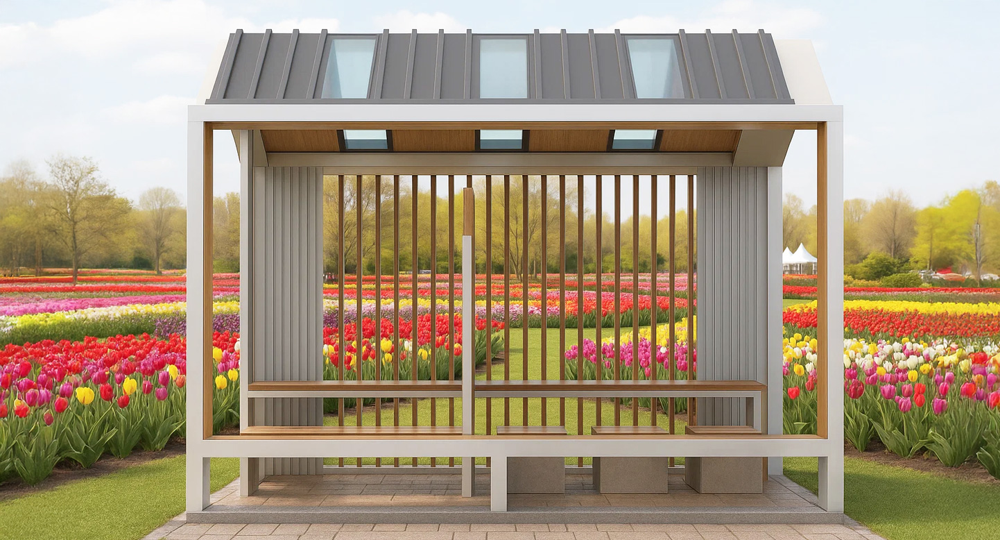 튤립가든 파빌리온 (Tulip Garden Pavilion)|PNDP-021-1 제품목록으로 바로가기 자료 및 바로가기 나라장터 바로연결 도면 다운로드 시공사진 보러가기 기타 (조명미포함) 세로 우드 루버와 밝은 프레임으로 꽃밭 풍경을 살린 개방형 쉼터입니다. 채광창을 통해 자연광이 부드럽게 들어오며, 공원·정원에서 풍경 감상에 적합합니다. 제품명 튤립가든 파빌리온 (Tulip Garden Pavilion)|PNDP-021-1 물품식별번호 24965774 규격 4,000 X 4,000 X 3,260(H) 재질 stl, hardwood, galvanized, polycarbonate 튤립가든 파빌리온 (Tulip Garden Pavilion)|PNDP-021-1 물품식별번호 24965774 규격 4,000 X 4,000 X 3,260(H) 재질 stl, hardwood, galvanized, polycarbonate 기타 (조명미포함) 세로 우드 루버와 밝은 프레임으로 꽃밭 풍경을 살린 개방형 쉼터입니다. 채광창을 통해 자연광이 부드럽게 들어오며, 공원·정원에서 풍경 감상에 적합합니다. 자료 및 바로가기 나라장터 바로연결 도면 다운로드 시공사진 보러가기