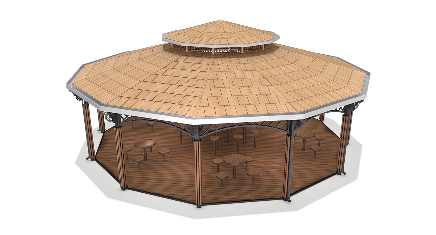 옥타하우스 파빌리온 (Octa House Pavilion)|PNDP-006 제품목록으로 바로가기 자료 및 바로가기 나라장터 바로연결 도면 다운로드 시공사진 보러가기 기타 전통 정자의 분위기를 현대적으로 풀어낸 팔각 파빌리온입니다. 우드 루프와 섬세한 기둥 디테일이 어우러져 공원·광장에서 품격 있는 휴식 공간을 제공합니다. 제품명 옥타하우스 파빌리온 (Octa House Pavilion)|PNDP-006 물품식별번호 24965764 규격 12,000 X 12,000 X 5,125(H) 재질 stl, hardwood, galvanized, polycarbonate 옥타하우스 파빌리온 (Octa House Pavilion)|PNDP-006 물품식별번호 24965764 규격 12,000 X 12,000 X 5,125(H) 재질 stl, hardwood, galvanized, polycarbonate 기타 전통 정자의 분위기를 현대적으로 풀어낸 팔각 파빌리온입니다. 우드 루프와 섬세한 기둥 디테일이 어우러져 공원·광장에서 품격 있는 휴식 공간을 제공합니다. 자료 및 바로가기 나라장터 바로연결 도면 다운로드 시공사진 보러가기
