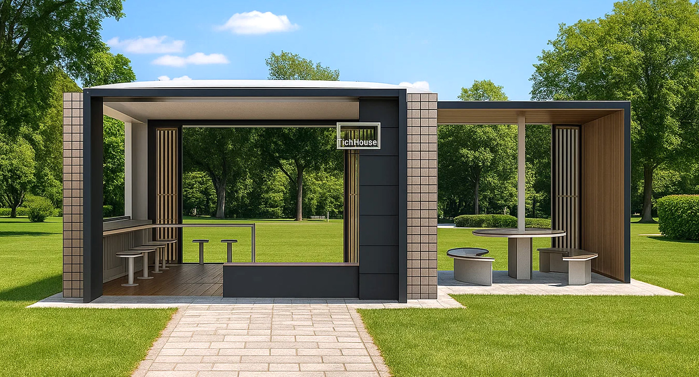 티크 하우스 파빌리온 (Teak House Pavilion)|PNDP-073 제품목록으로 바로가기 자료 및 바로가기 나라장터 바로연결 도면 다운로드 시공사진 보러가기 기타 티크 우드 톤과 메탈 프레임을 조합해 모던하면서도 따뜻한 분위기를 만든 쉼터입니다. 바 테이블과 원형 테이블을 분리 배치해 휴식·대화·야외 카페 기능을 모두 수행하는 실용적 커뮤니티 공간입니다. 제품명 티크 하우스 파빌리온 (Teak House Pavilion)|PNDP-073 물품식별번호 25953070 규격 8,600 x 6,000 x 3,000 재질 stl, hard wood, polycarbonate, hpl 티크 하우스 파빌리온 (Teak House Pavilion)|PNDP-073 물품식별번호 25953070 규격 8,600 x 6,000 x 3,000 재질 stl, hard wood, polycarbonate, hpl 기타 티크 우드 톤과 메탈 프레임을 조합해 모던하면서도 따뜻한 분위기를 만든 쉼터입니다. 바 테이블과 원형 테이블을 분리 배치해 휴식·대화·야외 카페 기능을 모두 수행하는 실용적 커뮤니티 공간입니다. 자료 및 바로가기 나라장터 바로연결 도면 다운로드 시공사진 보러가기