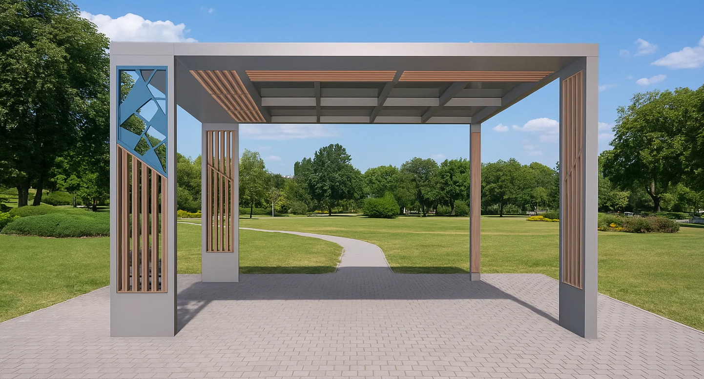 노블 그레이스 퍼걸러 (Noble Grace Pergola)|PDP-048A 제품목록으로 바로가기 자료 및 바로가기 나라장터 바로연결 도면 다운로드 시공사진 보러가기 기타 미러 패널과 우드 라인의 조화로 세련된 감성을 극대화한 프리미엄 쉼터로, 공간에 고급스러운 포인트를 더하면서도 자연과의 조화로움을 잃지 않도록 설계되었습니다 제품명 노블 그레이스 퍼걸러 (Noble Grace Pergola)|PDP-048A 물품식별번호 25017754 규격 4,000 X 4,000 X 2,600(H) 재질 stl,hardwood, polycarbonate,galvanized 노블 그레이스 퍼걸러 (Noble Grace Pergola)|PDP-048A 물품식별번호 25017754 규격 4,000 X 4,000 X 2,600(H) 재질 stl,hardwood, polycarbonate,galvanized 기타 미러 패널과 우드 라인의 조화로 세련된 감성을 극대화한 프리미엄 쉼터로, 공간에 고급스러운 포인트를 더하면서도 자연과의 조화로움을 잃지 않도록 설계되었습니다 자료 및 바로가기 나라장터 바로연결 도면 다운로드 시공사진 보러가기