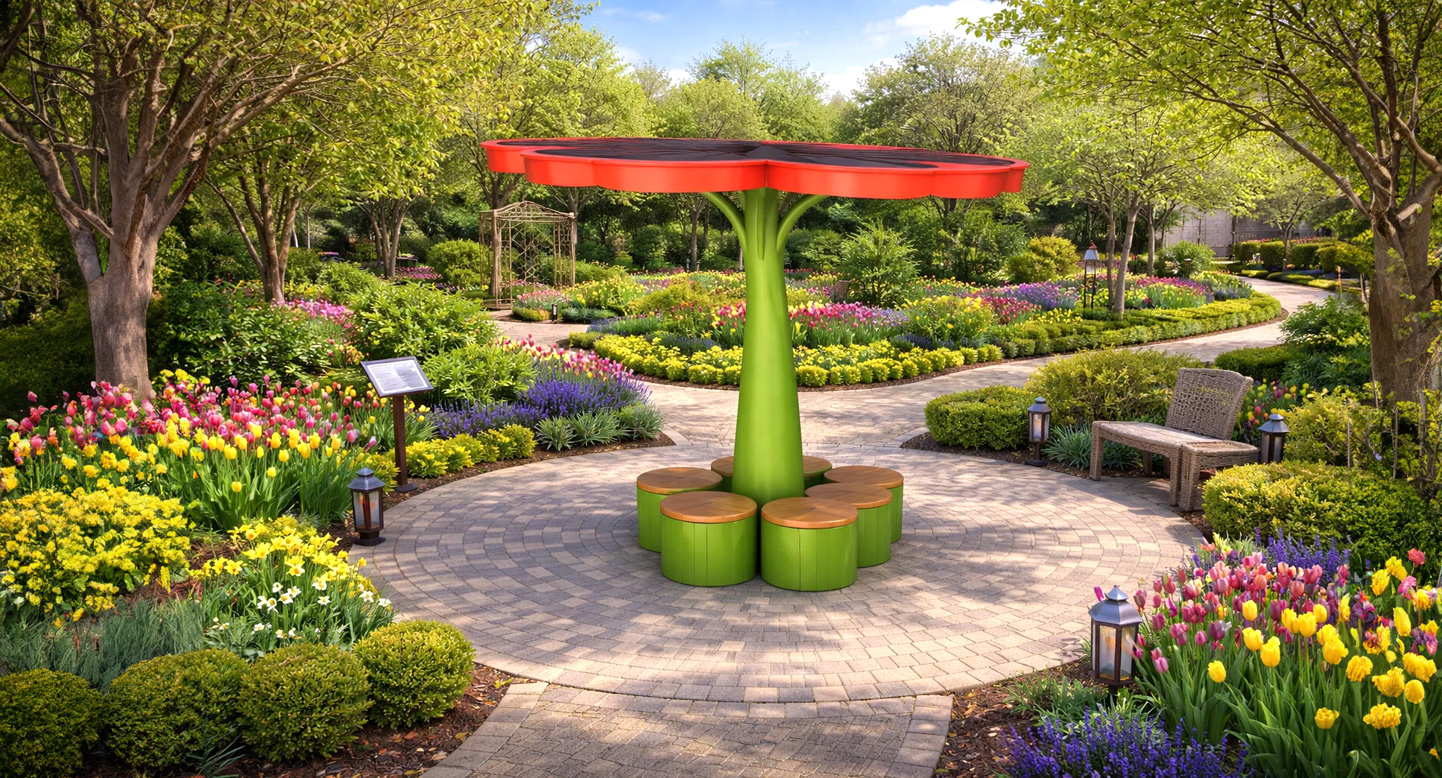 플라워 링 셀터 (Flower Ring Shelter)|PNDP-1149 제품목록으로 바로가기 자료 및 바로가기 나라장터 바로연결 도면 다운로드 시공사진 보러가기 기타 꽃잎 형태의 상부 구조와 원형 링 패턴을 결합해 시원한 그늘과 특별한 조형미를 제공하는 쉘터입니다. 하부 꽃잎형 좌석과 상부 그림자가 자연스럽게 어우러져, 놀이공간에서 포토존 역할을 톡톡히 합니다. 제품명 플라워 링 셀터 (Flower Ring Shelter)|PNDP-1149 물품식별번호 24963485 규격 2,855 X 2,781 X 2,500(H) 재질 stl, galvanized, hpl, polycarbonate 플라워 링 셀터 (Flower Ring Shelter)|PNDP-1149 물품식별번호 24963485 규격 2,855 X 2,781 X 2,500(H) 재질 stl, galvanized, hpl, polycarbonate 기타 꽃잎 형태의 상부 구조와 원형 링 패턴을 결합해 시원한 그늘과 특별한 조형미를 제공하는 쉘터입니다. 하부 꽃잎형 좌석과 상부 그림자가 자연스럽게 어우러져, 놀이공간에서 포토존 역할을 톡톡히 합니다. 자료 및 바로가기 나라장터 바로연결 도면 다운로드 시공사진 보러가기
