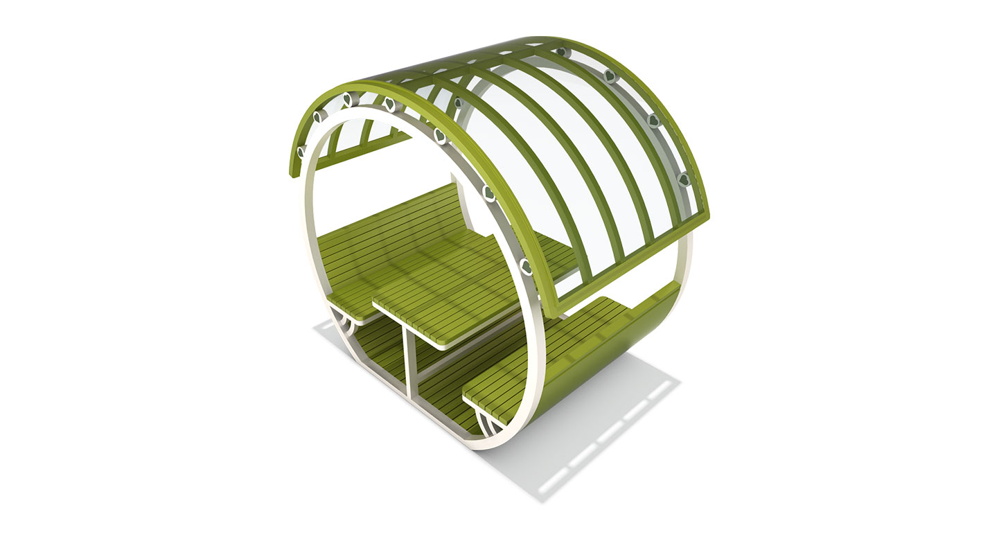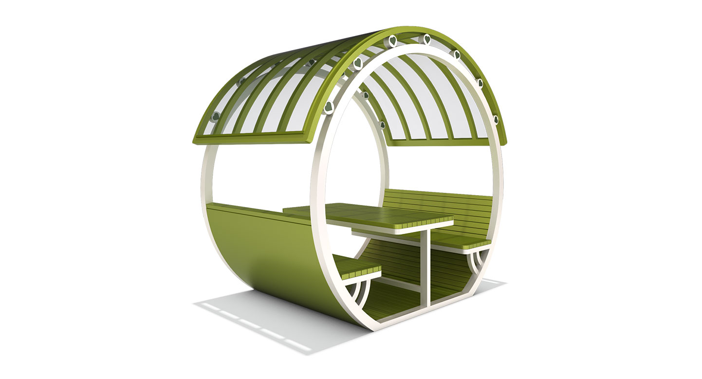 아치링 파빌리온 (Arch Ring Pavilion)|PNDP-1122 제품목록으로 바로가기 자료 및 바로가기 나라장터 바로연결 도면 다운로드 시공사진 보러가기 기타 원형 프레임과 아치 루버 지붕을 결합해 부드러운 곡선 미감을 강조하고, 테이블과 벤치를 일체화해 편안한 휴식과 소통이 자연스럽게 이루어지는 쉼터입니다. 제품명 아치링 파빌리온 (Arch Ring Pavilion)|PNDP-1122 물품식별번호 24963972 규격 2,672 X 1,660 X 2,437(H) 재질 stl, galvanized, hard wood,polycarbonate 아치링 파빌리온 (Arch Ring Pavilion)|PNDP-1122 물품식별번호 24963972 규격 2,672 X 1,660 X 2,437(H) 재질 stl, galvanized, hard wood,polycarbonate 기타 원형 프레임과 아치 루버 지붕을 결합해 부드러운 곡선 미감을 강조하고, 테이블과 벤치를 일체화해 편안한 휴식과 소통이 자연스럽게 이루어지는 쉼터입니다. 자료 및 바로가기 나라장터 바로연결 도면 다운로드 시공사진 보러가기