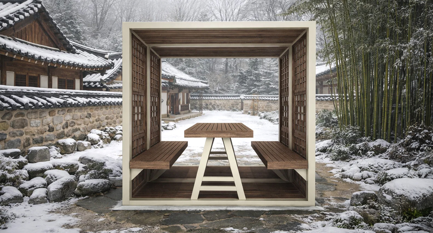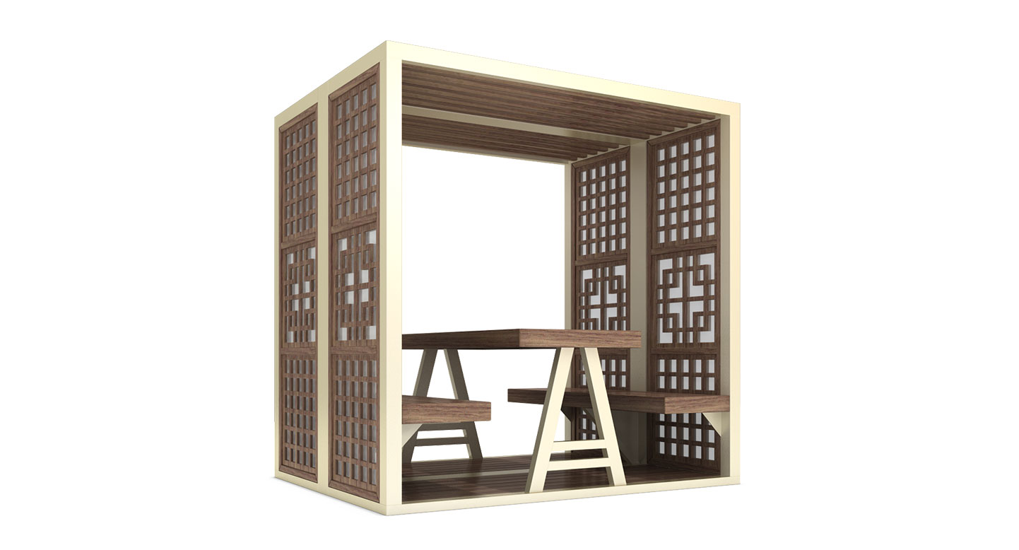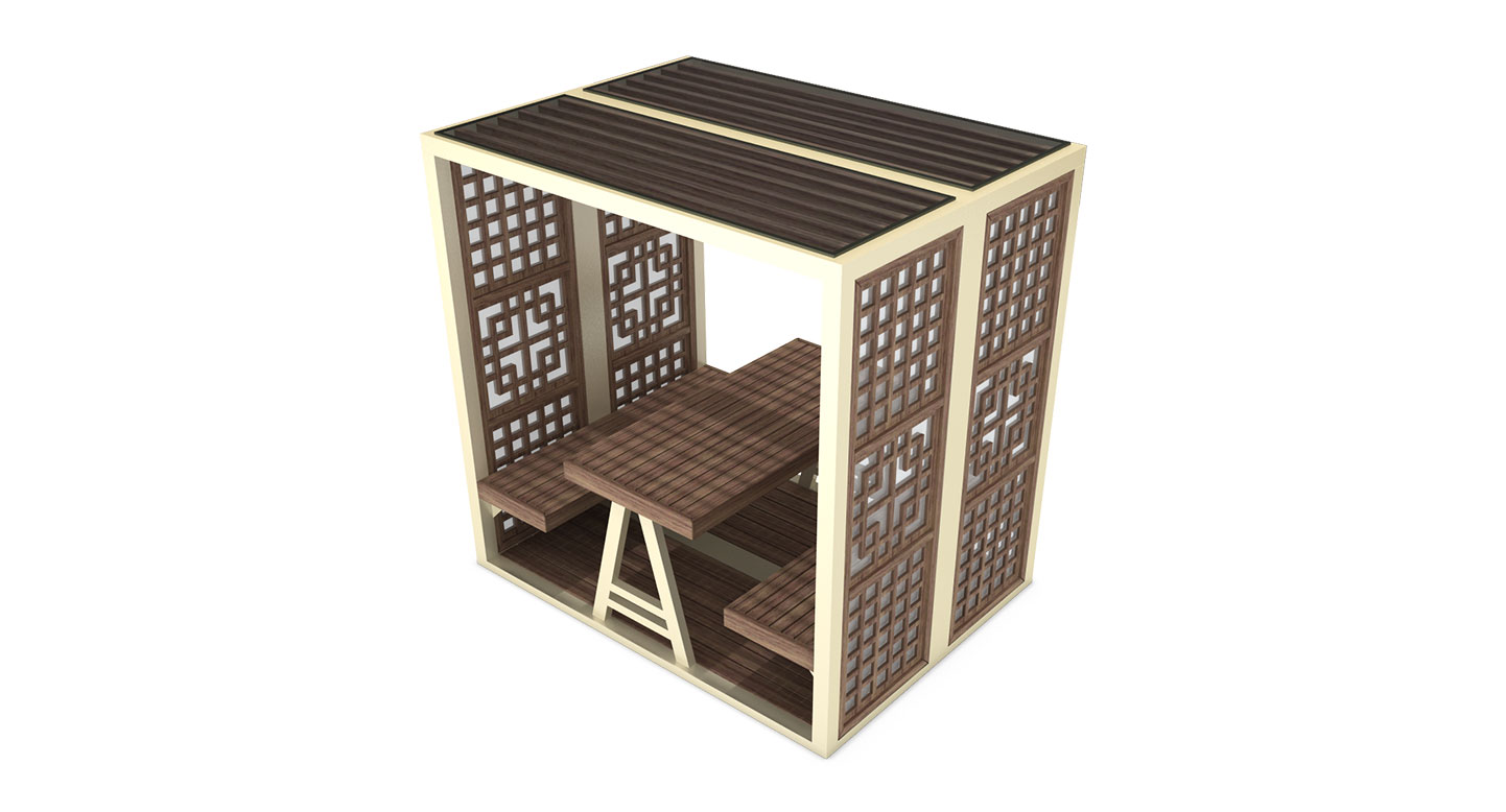 헤리티지 큐브 (Heritage Cube)|PNDP-1110 제품목록으로 바로가기 자료 및 바로가기 나라장터 바로연결 도면 다운로드 시공사진 보러가기 기타 전통 창호 패턴을 현대적으로 재해석해 사각 쉘터에 적용한 디자인으로, 안정적인 우드 테이블과 함께 고즈넉한 휴식 분위기를 제공하는 파빌리온입니다. 제품명 헤리티지 큐브 (Heritage Cube)|PNDP-1110 물품식별번호 24963960 규격 2,150 X 1,600 X 2,120(H) 재질 stl, al-casting, hard wood, polycarbonate 헤리티지 큐브 (Heritage Cube)|PNDP-1110 물품식별번호 24963960 규격 2,150 X 1,600 X 2,120(H) 재질 stl, al-casting, hard wood, polycarbonate 기타 전통 창호 패턴을 현대적으로 재해석해 사각 쉘터에 적용한 디자인으로, 안정적인 우드 테이블과 함께 고즈넉한 휴식 분위기를 제공하는 파빌리온입니다. 자료 및 바로가기 나라장터 바로연결 도면 다운로드 시공사진 보러가기