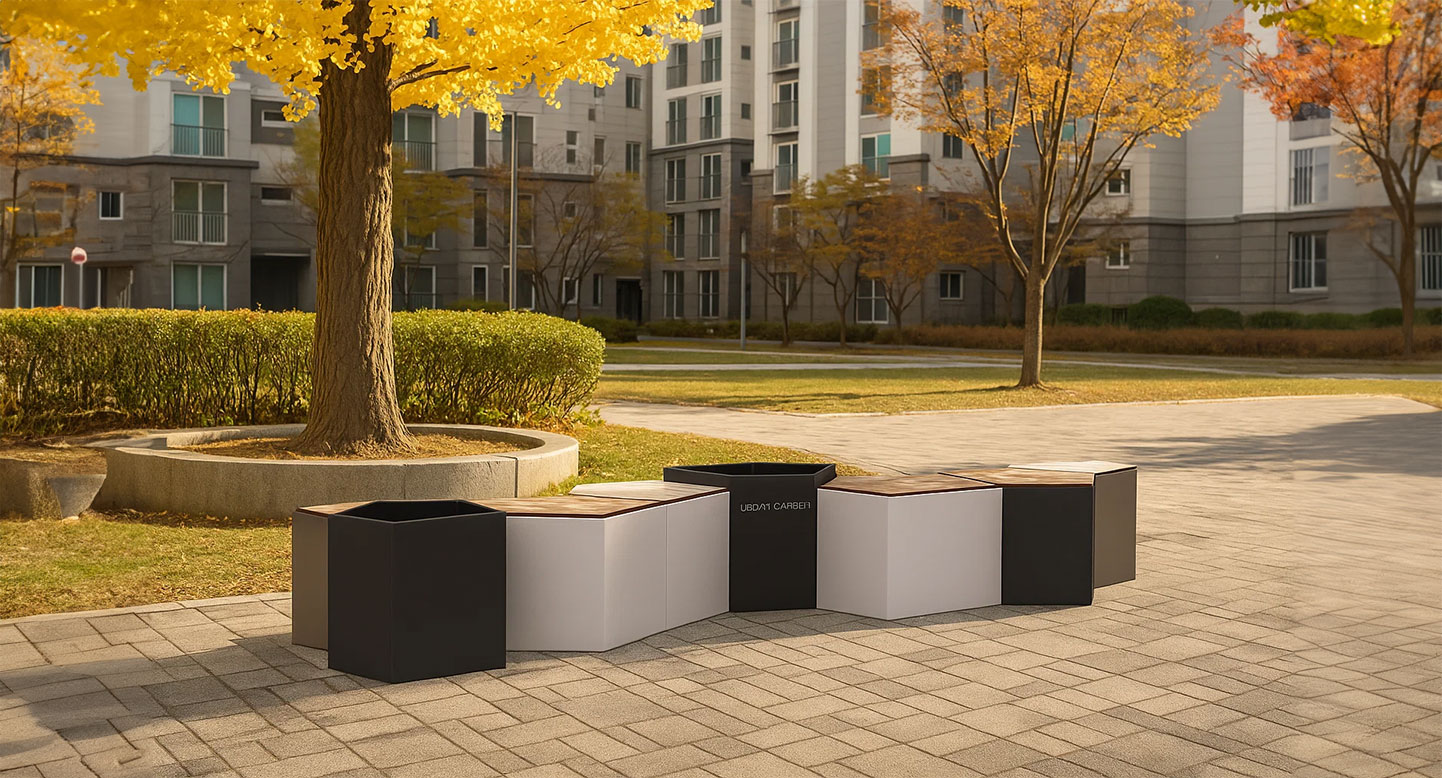 헥사브릭(HexaBrick) 라운지벤치|PND-BB025-031 제품목록으로 바로가기 자료 및 바로가기 나라장터 바로연결 도면 다운로드 시공사진 보러가기 기타 육각 모듈로 구성된 미니멀 벤치로, 메탈 투톤과 우드 상판이 조화된 단지형 프리미엄 조경가구입니다. 반복 패턴이 안정감 있는 공간을 만들며, 화분·등받이·테이블 등 확장 모듈로 다양하게 구성할 수 있습니다. 제품명 헥사브릭(HexaBrick) 라운지벤치|PND-BB025-031 물품식별번호 26000552 규격 3050×980×470mm 재질 stl, galvanized, hpl 헥사브릭(HexaBrick) 라운지벤치|PND-BB025-031 물품식별번호 26000552 규격 3050×980×470mm 재질 stl, galvanized, hpl 기타 육각 모듈로 구성된 미니멀 벤치로, 메탈 투톤과 우드 상판이 조화된 단지형 프리미엄 조경가구입니다. 반복 패턴이 안정감 있는 공간을 만들며, 화분·등받이·테이블 등 확장 모듈로 다양하게 구성할 수 있습니다. 자료 및 바로가기 나라장터 바로연결 도면 다운로드 시공사진 보러가기