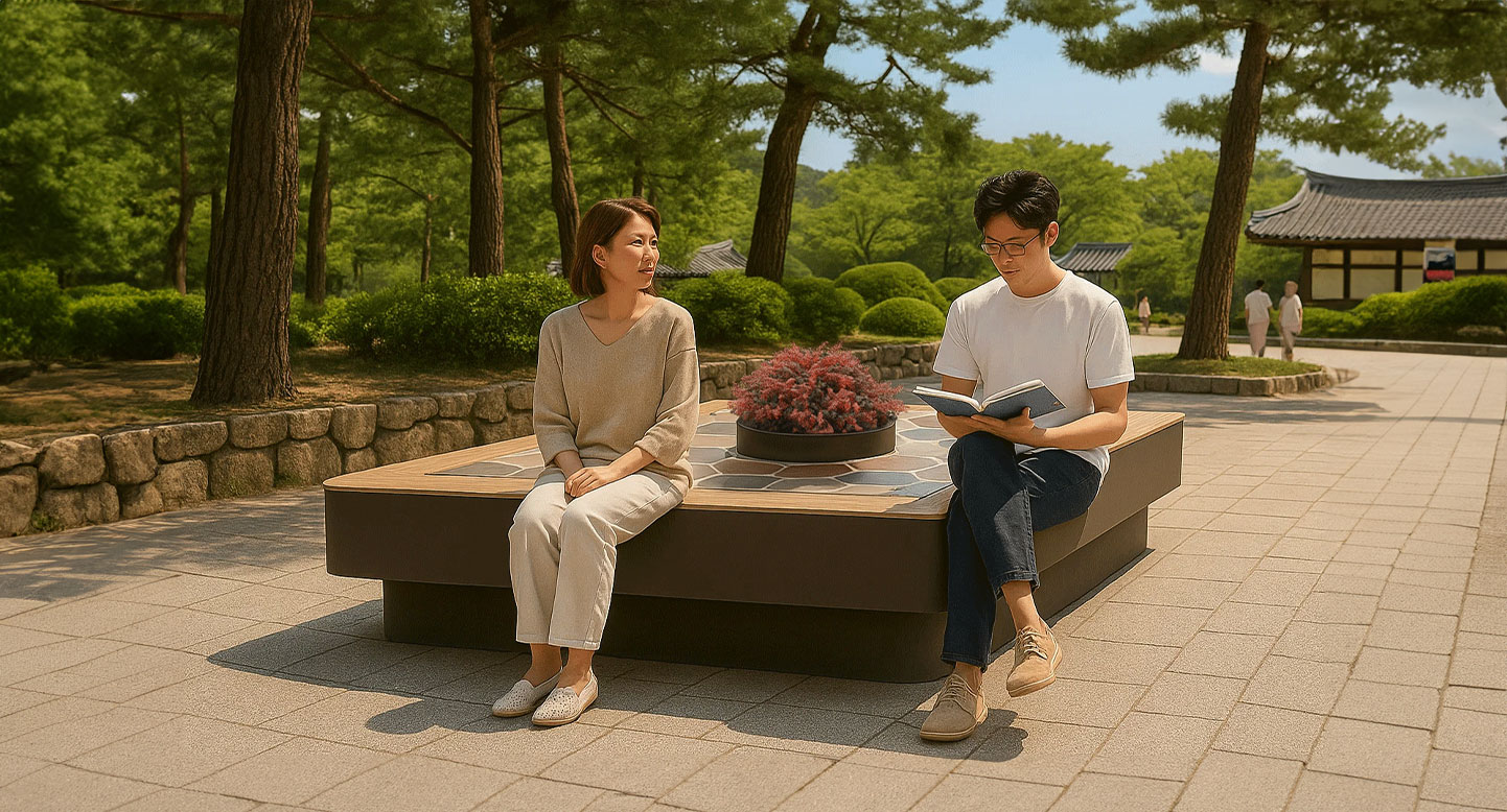 헤리티지 스톤(Heritage stone) 벤치|PND-BB025-015 제품목록으로 바로가기 자료 및 바로가기 나라장터 바로연결 도면 다운로드 시공사진 보러가기 기타 전통 마당의 온기와 질서를 현대적으로 담은 평상형 벤치로, 육각 스톤 패턴이 한옥의 기와·돌담·바닥 문양을 모티브로 한 감성 디자인입니다. 제품명 헤리티지 스톤(Heritage stone) 벤치|PND-BB025-015 물품식별번호 26002950 규격 3000×2000×550mm 재질 헤리티지 스톤(Heritage stone) 벤치|PND-BB025-015 물품식별번호 26002950 규격 3000×2000×550mm 재질 기타 전통 마당의 온기와 질서를 현대적으로 담은 평상형 벤치로, 육각 스톤 패턴이 한옥의 기와·돌담·바닥 문양을 모티브로 한 감성 디자인입니다. 자료 및 바로가기 나라장터 바로연결 도면 다운로드 시공사진 보러가기