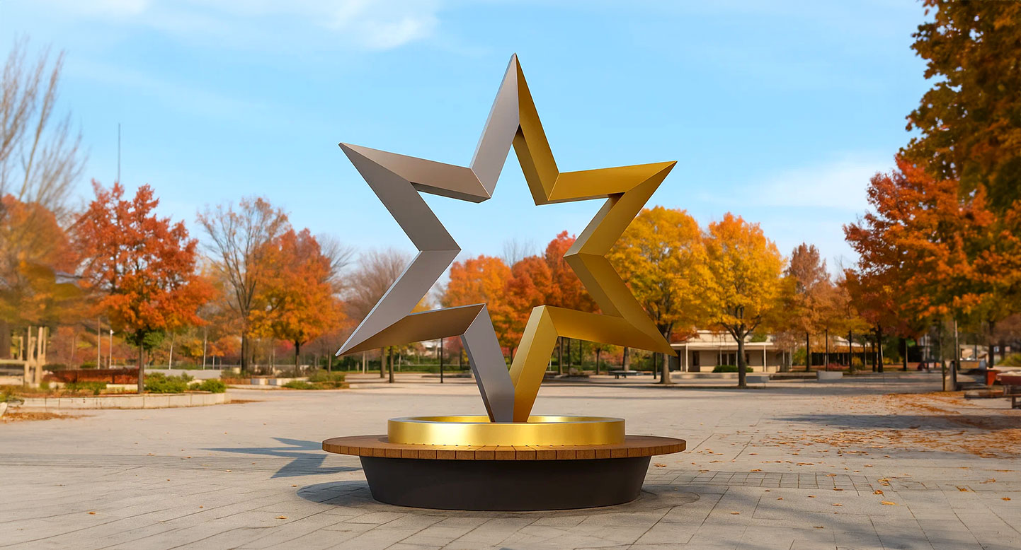 스타 모먼트(Star Moment) 아트벤치|PND-BB025-045 제품목록으로 바로가기 자료 및 바로가기 나라장터 바로연결 도면 다운로드 시공사진 보러가기 기타 찬란한 ‘순간의 별’을 형상화한 랜드마크 벤치입니다. 황금·실버톤 입체 구조가 도전과 희망을 상징하며, 빛에 따라 변화하는 조형미를 제공합니다. 중앙 원형 데크는 사람들을 모아주는 휴식 중심 공간입니다. 제품명 스타 모먼트(Star Moment) 아트벤치|PND-BB025-045 물품식별번호 26027570 규격 2600×2600×3260mm 재질 stl, galvanized, hard wood 스타 모먼트(Star Moment) 아트벤치|PND-BB025-045 물품식별번호 26027570 규격 2600×2600×3260mm 재질 stl, galvanized, hard wood 기타 찬란한 ‘순간의 별’을 형상화한 랜드마크 벤치입니다. 황금·실버톤 입체 구조가 도전과 희망을 상징하며, 빛에 따라 변화하는 조형미를 제공합니다. 중앙 원형 데크는 사람들을 모아주는 휴식 중심 공간입니다. 자료 및 바로가기 나라장터 바로연결 도면 다운로드 시공사진 보러가기
