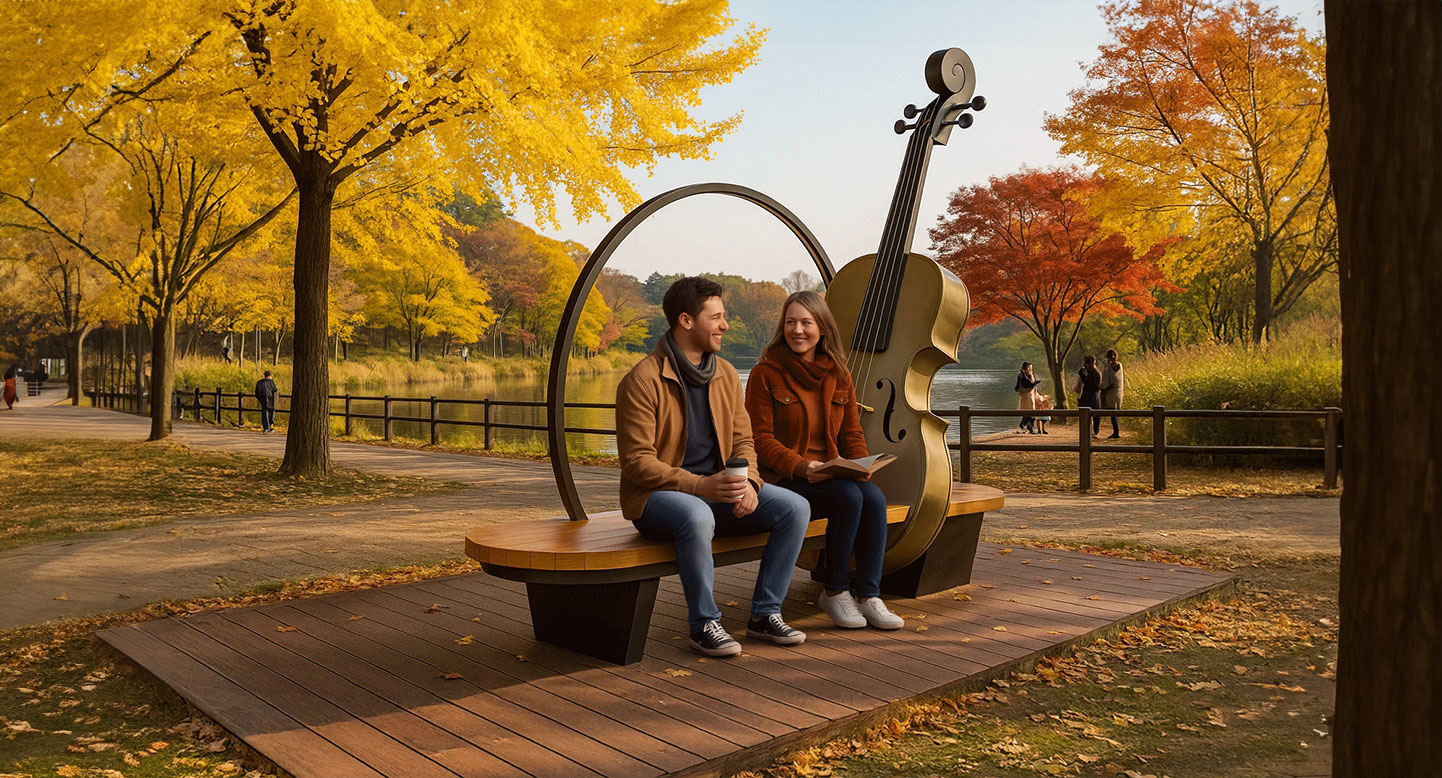 스트링하모니(String Harmony) 벤치|PND-BB025-063 제품목록으로 바로가기 자료 및 바로가기 나라장터 바로연결 도면 다운로드 시공사진 보러가기 기타 바이올린 선율을 모티브로 한 예술형 벤치입니다. 부드러운 곡선과 원목 질감이 음악적 분위기를 더하며 감성 포토존을 형성합니다. 제품명 스트링하모니(String Harmony) 벤치|PND-BB025-063 물품식별번호 26037325 규격 3000×1040×2810mm 재질 stl, galvanized, hard wood 스트링하모니(String Harmony) 벤치|PND-BB025-063 물품식별번호 26037325 규격 3000×1040×2810mm 재질 stl, galvanized, hard wood 기타 바이올린 선율을 모티브로 한 예술형 벤치입니다. 부드러운 곡선과 원목 질감이 음악적 분위기를 더하며 감성 포토존을 형성합니다. 자료 및 바로가기 나라장터 바로연결 도면 다운로드 시공사진 보러가기